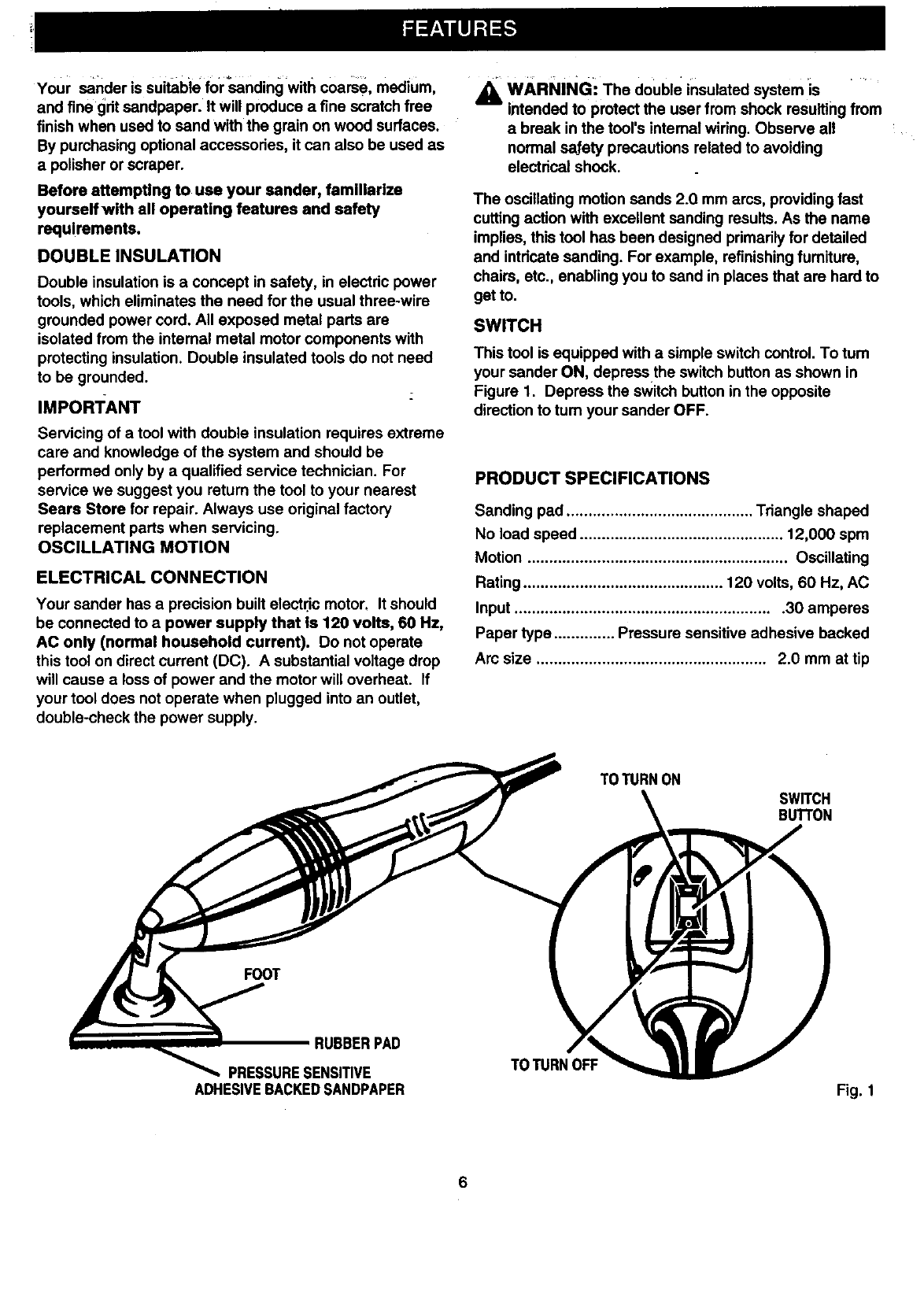 Craftsman 315116301 User Manual DETAIL SANDER Manuals And Guides 98120254