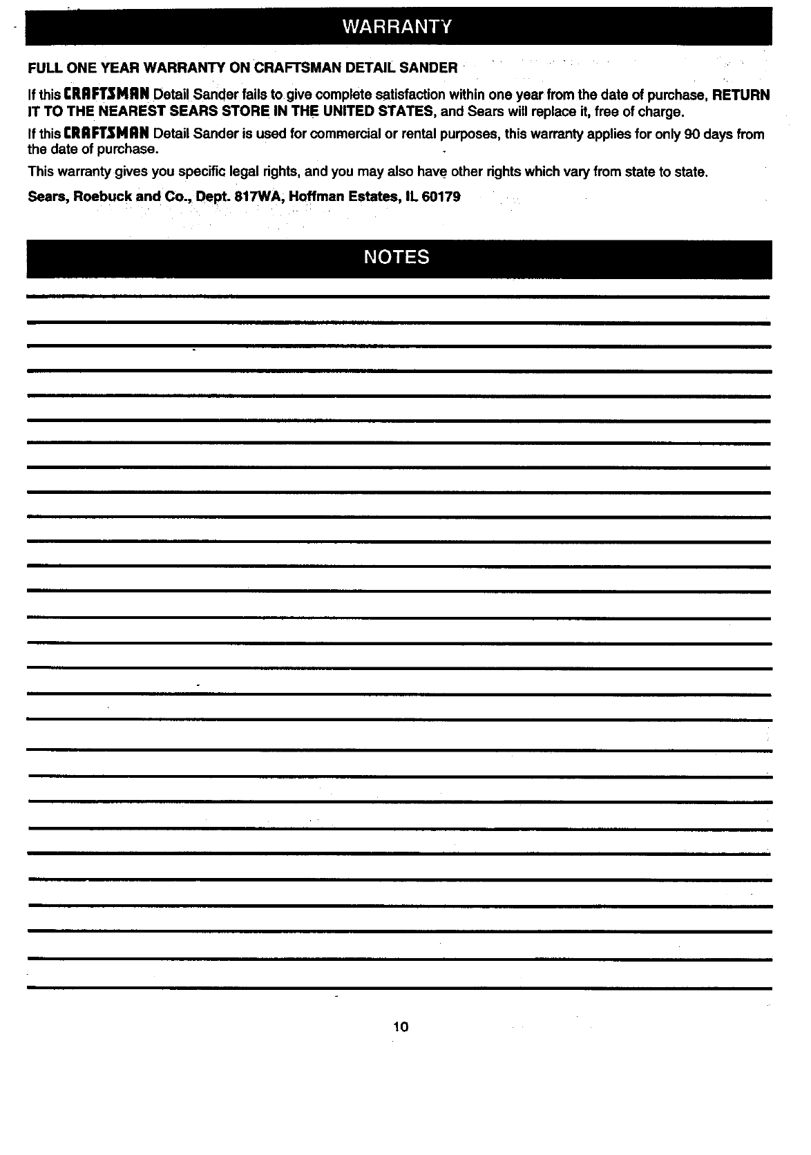 FULL ONE YEAR WARRANTY ON CRAFTSMAN DETAIL SANDER