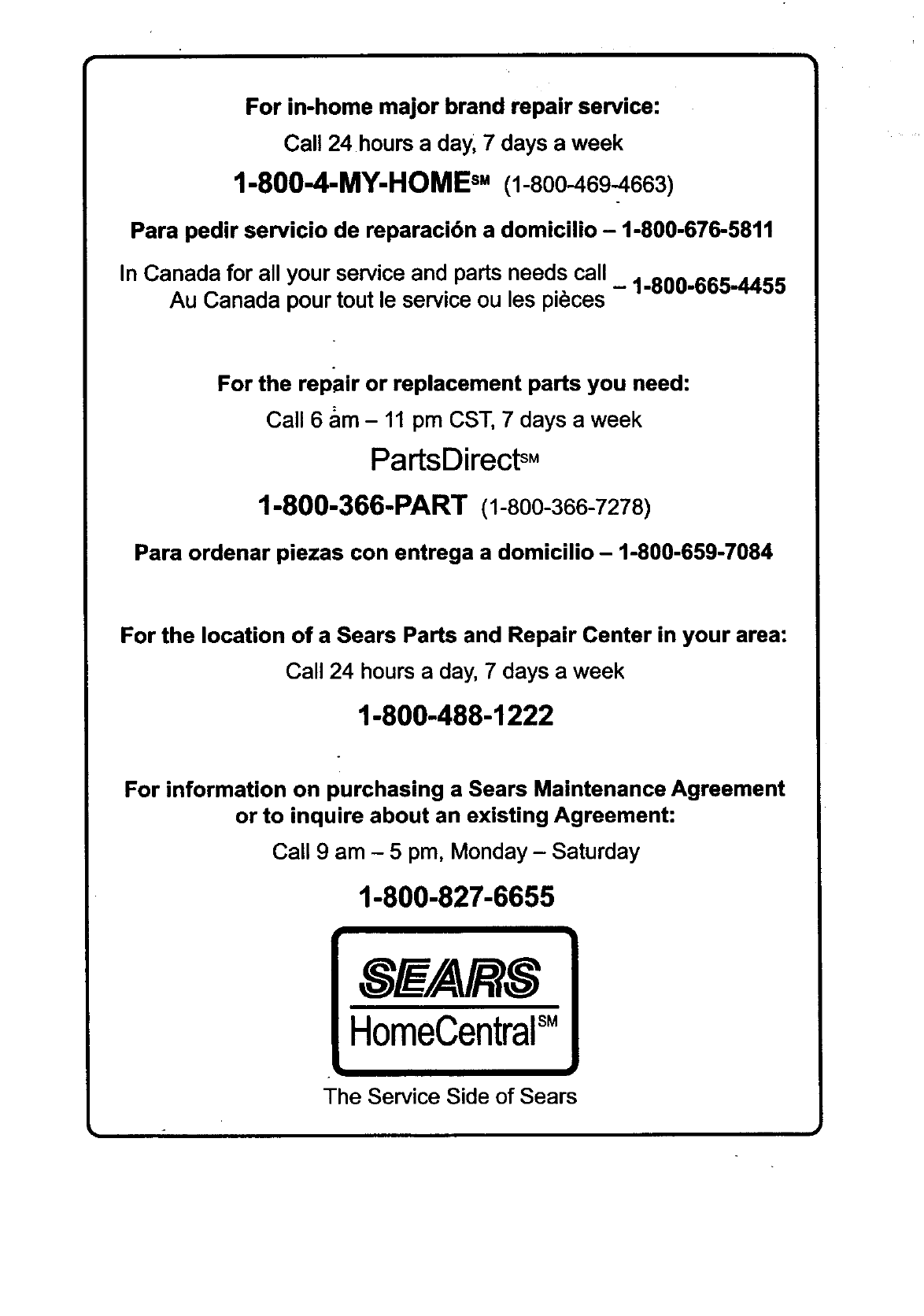 nearest Sears Repair Center. Contact your nearest Sears Retail Store for Service Center