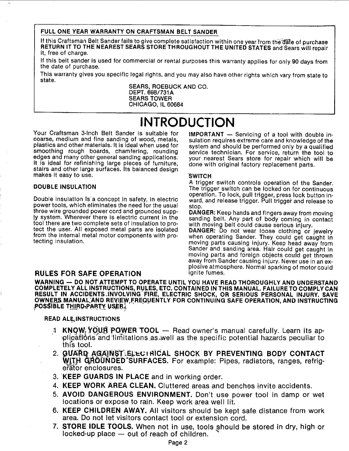 If this Craftsman Belt Sander fails to give complete satisfaction within one year'from th_e of purchase