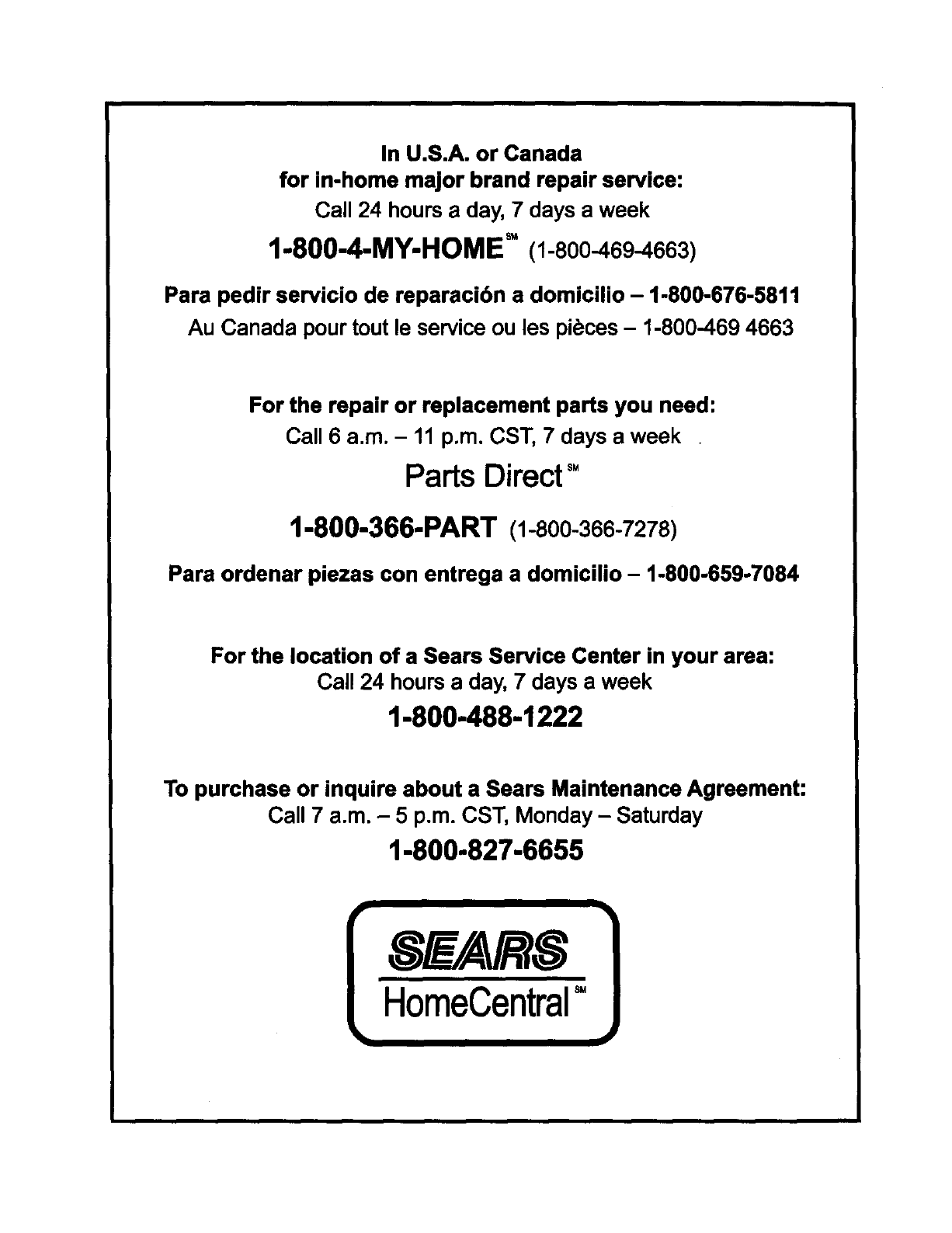 RETURN IT TO THE NEAREST SEARS STORE IN THE UNITED STATES, and Sears will repair it, free of