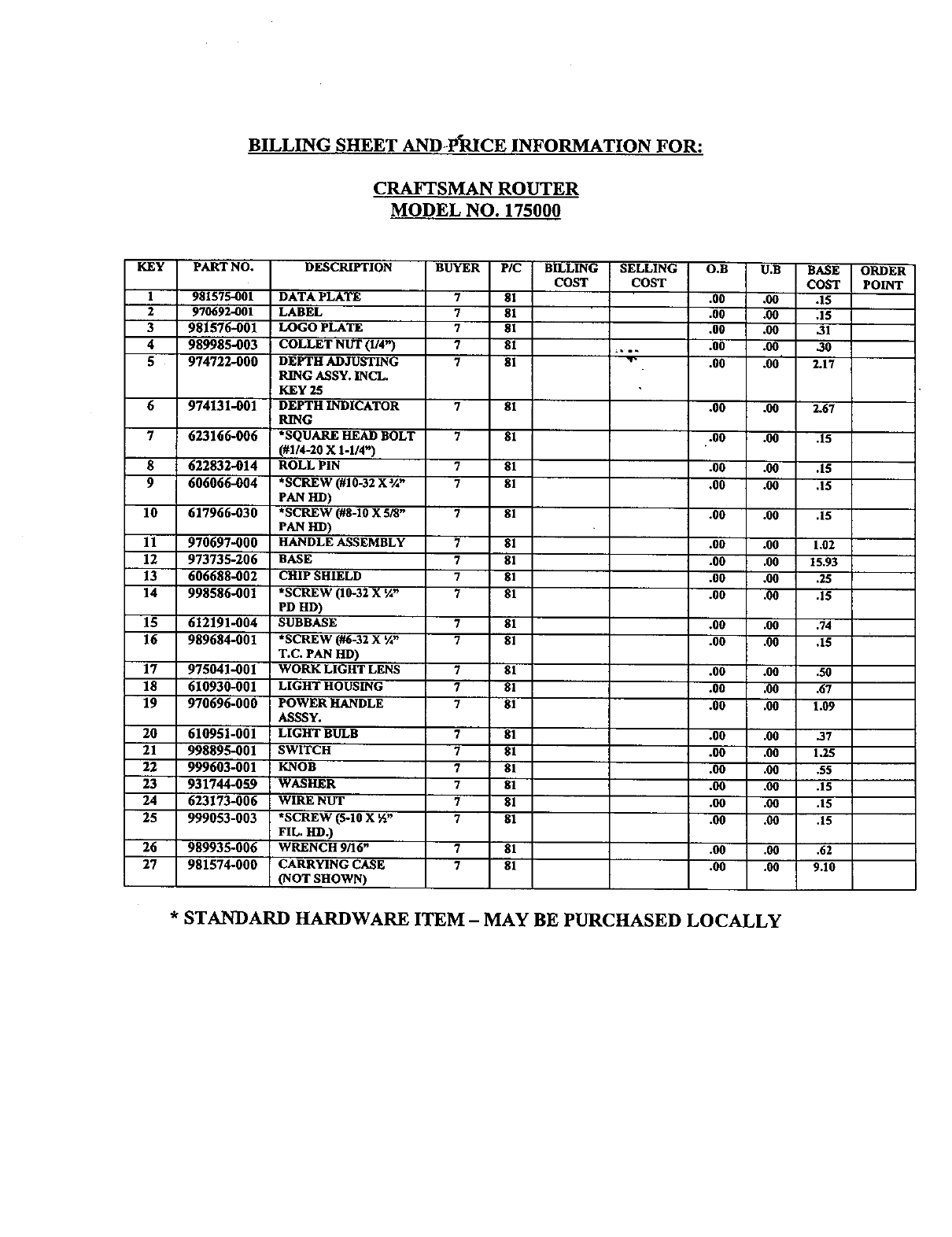 * STANDARD HARDWARE ITEM -MAY BE PURCHASED LOCALLY