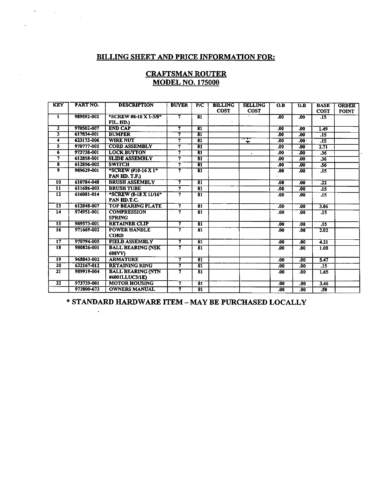 PART NO. DESCRIPTION BUYER P/C BILLING SELLING