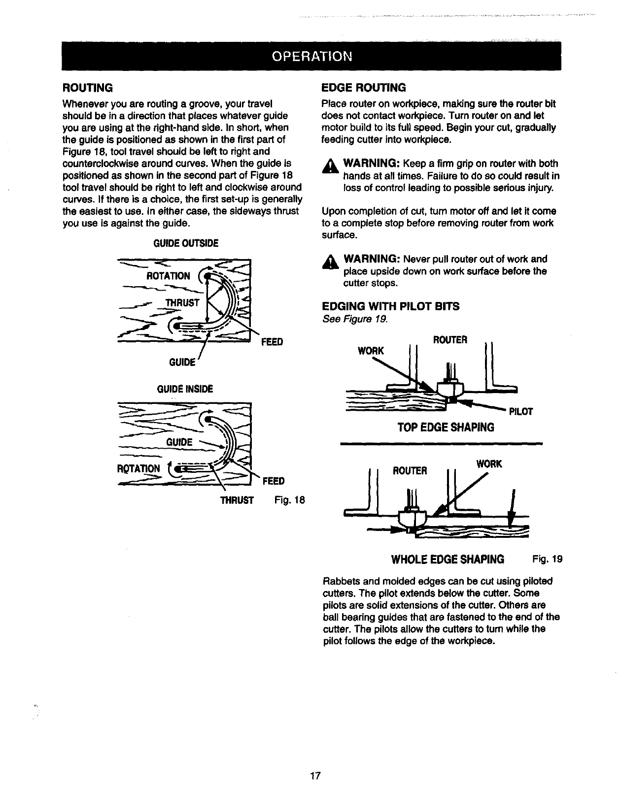 Operation, Warnings and Cautions. If you use