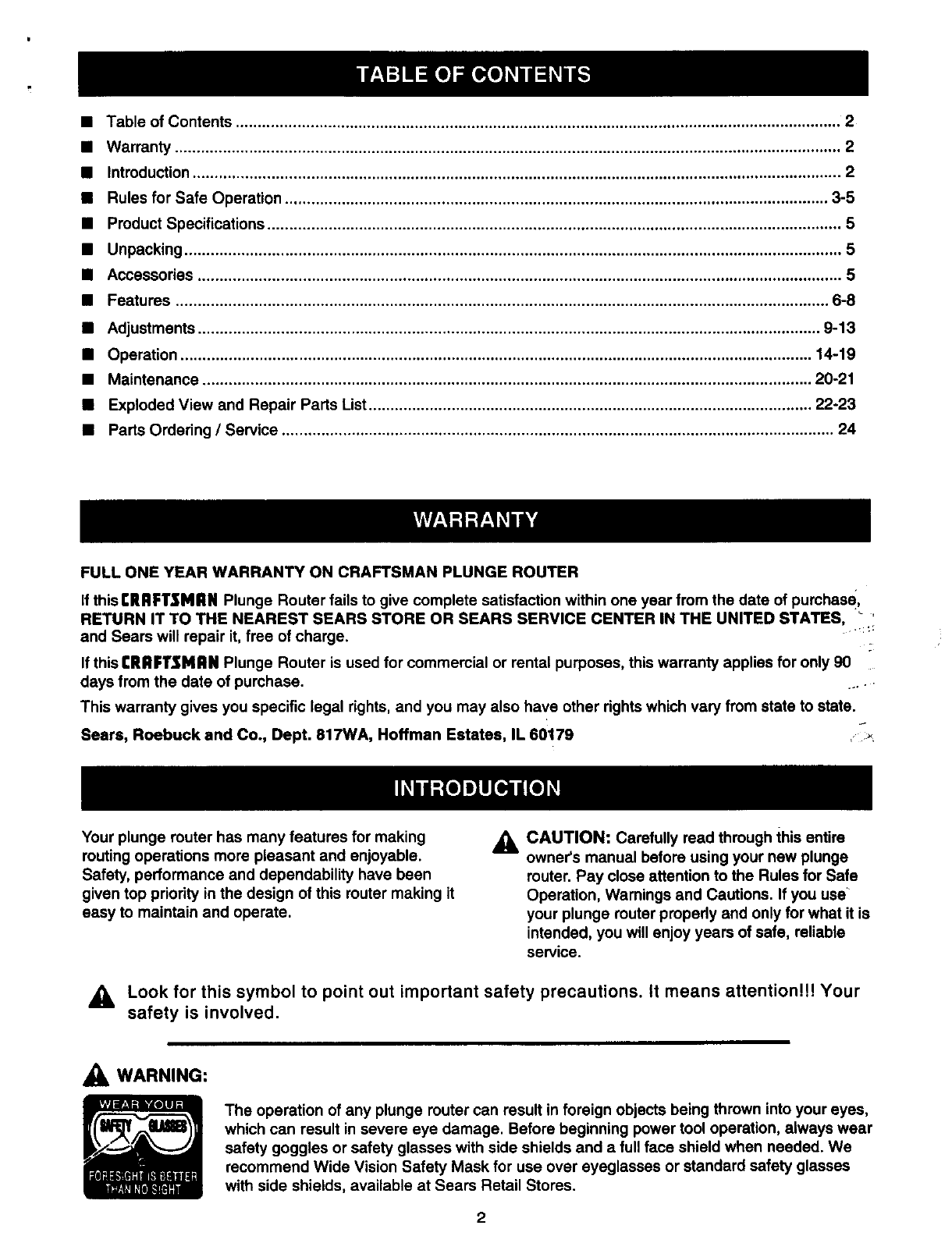 FULL ONE YEAR WARRANTY ON CRAFTSMAN PLUNGE ROUTER