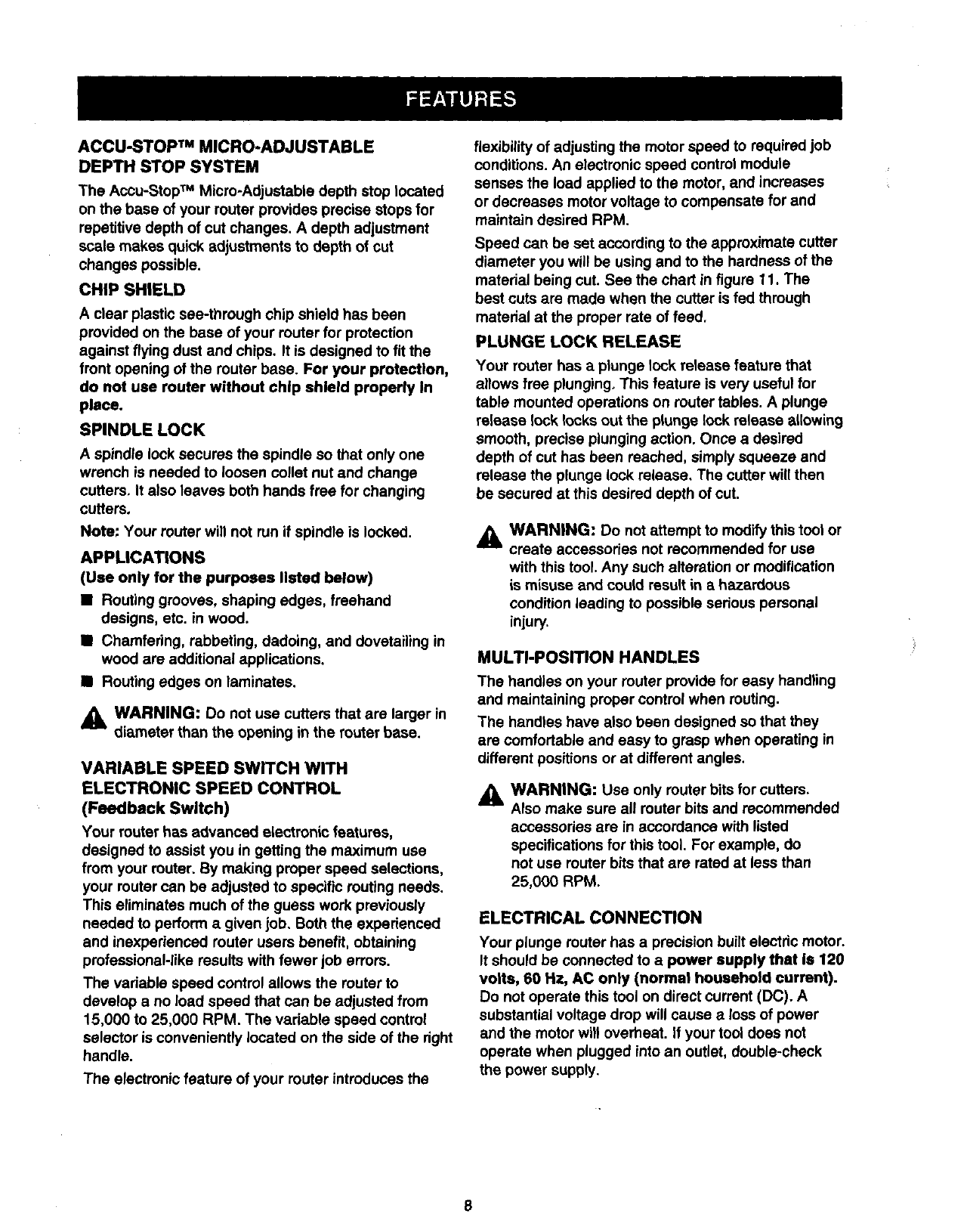 Craftsman 315175070 User Manual ELECTRONIC PLUNGE ROUTER Manuals And Guides L0090086