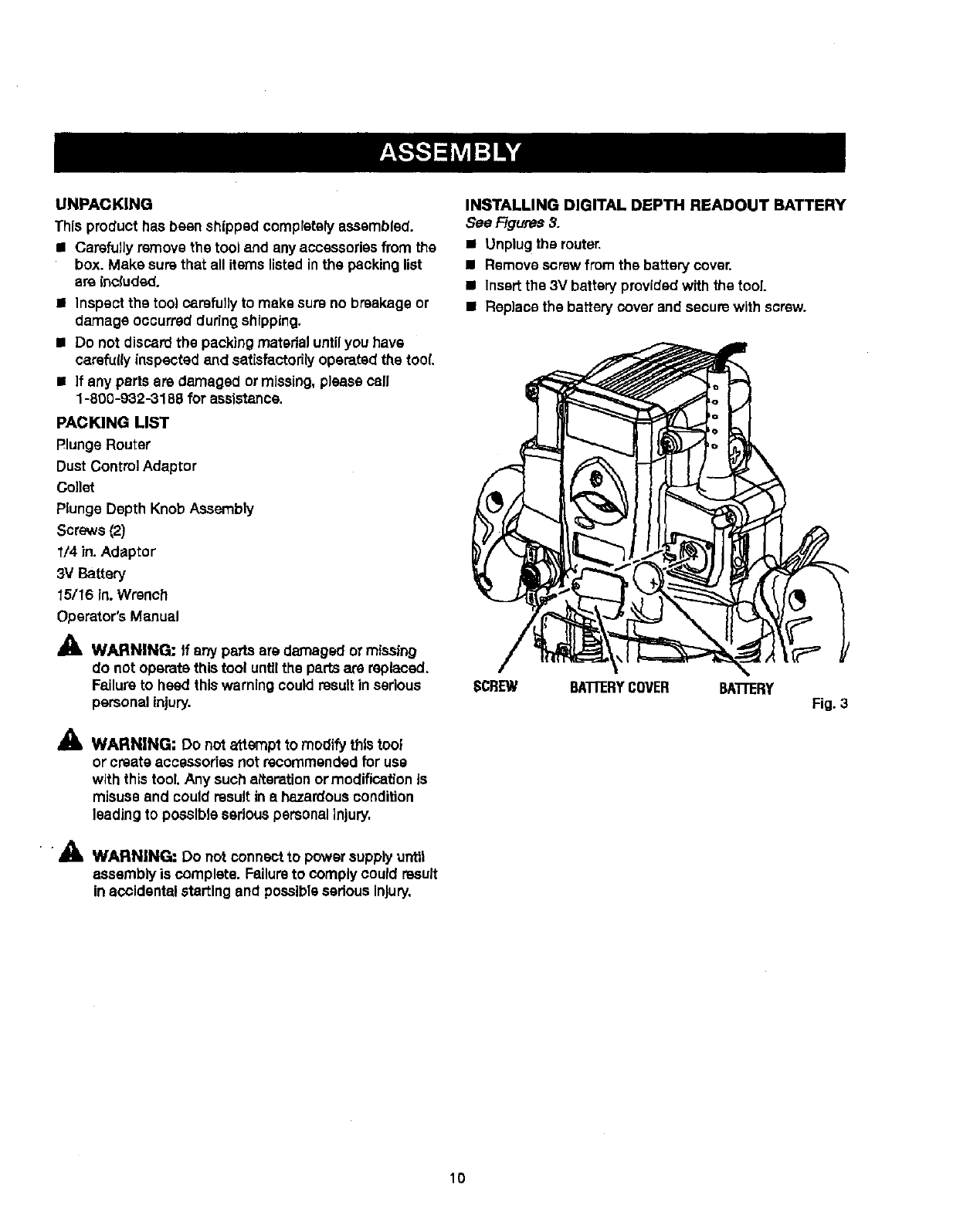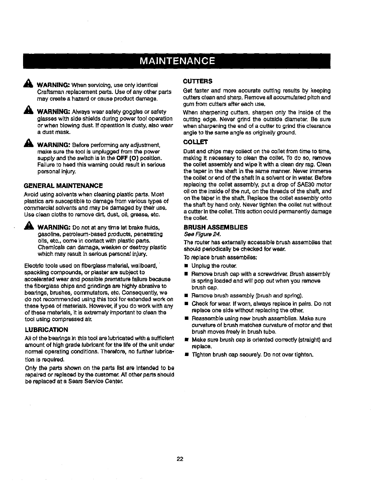 CRAFTSMAN Router Manual L0609412 CRAFTSMAN Router Owner's Manual, CRAFTSMAN Router installation guides