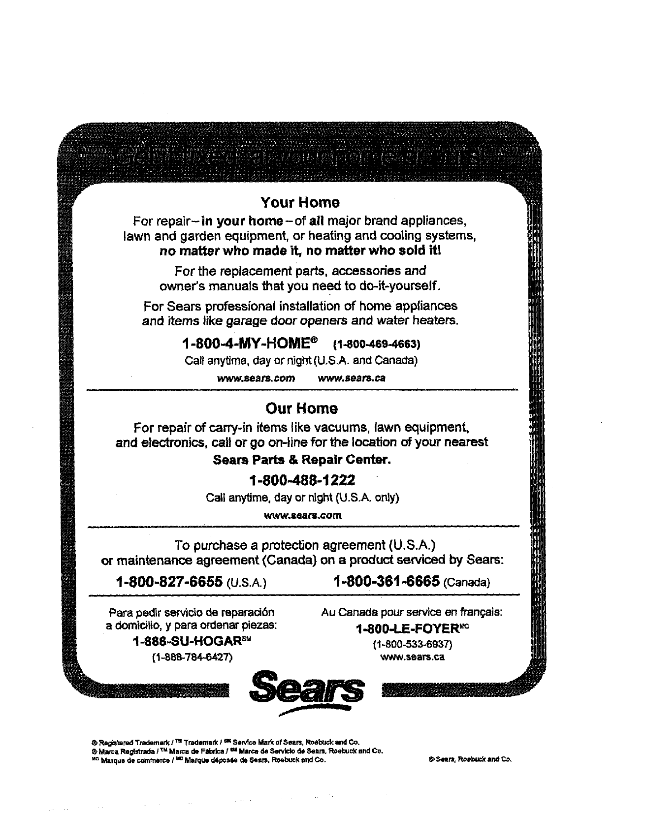 NEAREST SEARS STORE OR SEARS PARTS & REPAIR CENTER IN THE UNITED STATES, and Sears will repair it,