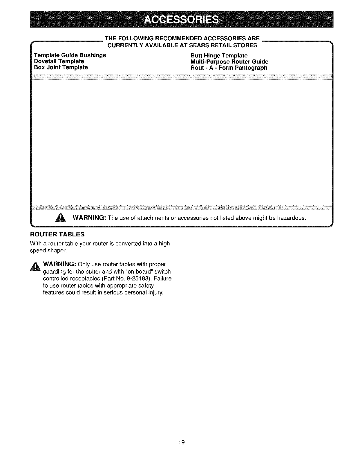 WARNING: The use of attachments or accessories not listed above might be hazardous.