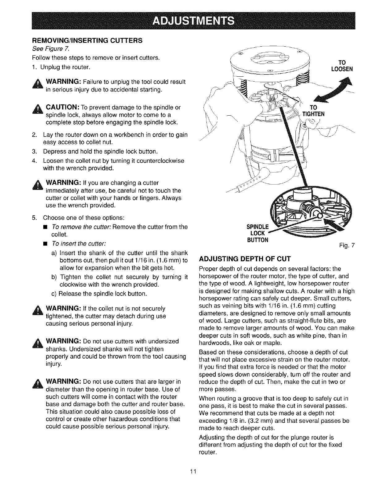 CRAFTSMAN Router Manual L0310347 CRAFTSMAN Router Owner's Manual, CRAFTSMAN Router installation guides