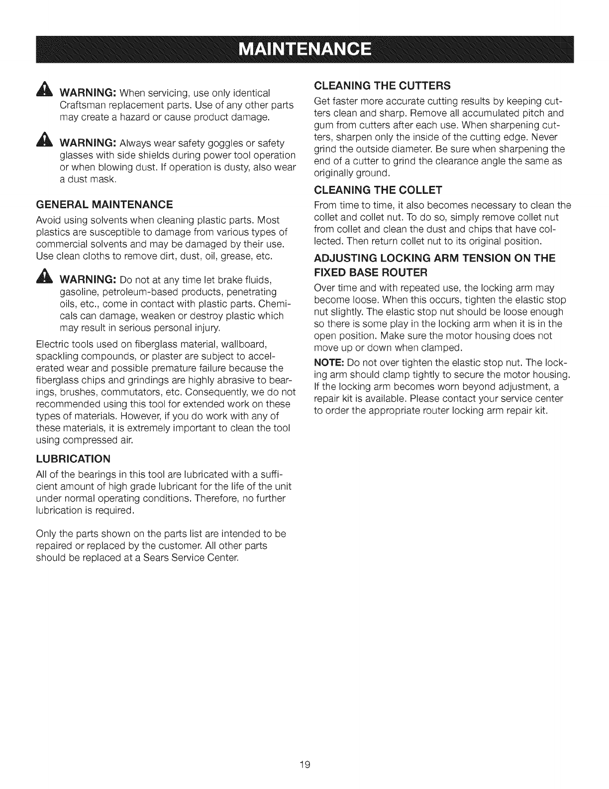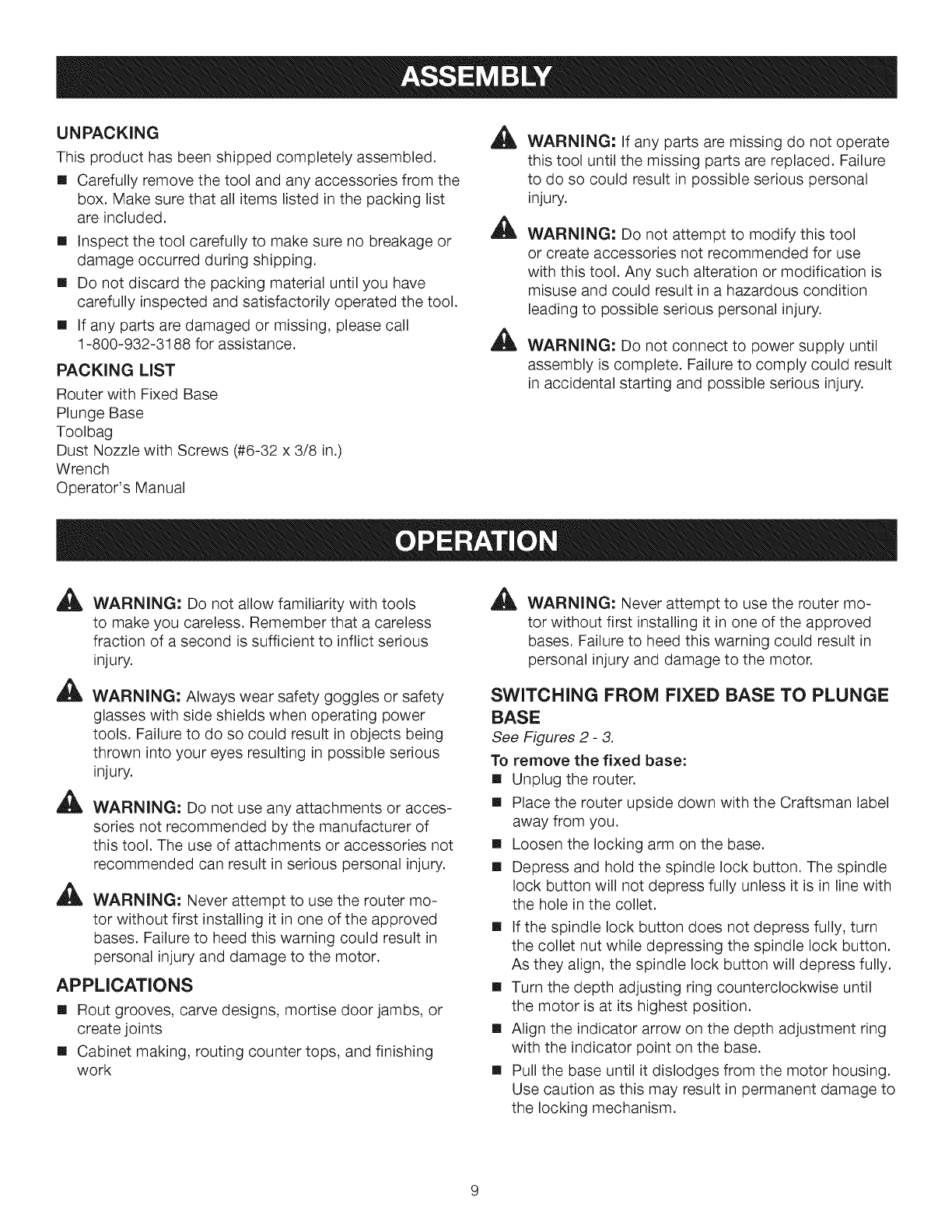 CRAFTSMAN Router Manual L0905110 CRAFTSMAN Router Owner's Manual, CRAFTSMAN Router installation guides