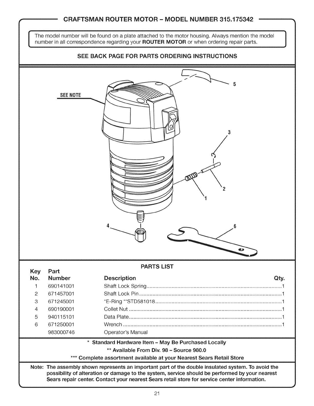 _, CRAFTSMAN ROUTER MOTOR - MODEL NUMBER 315.175342