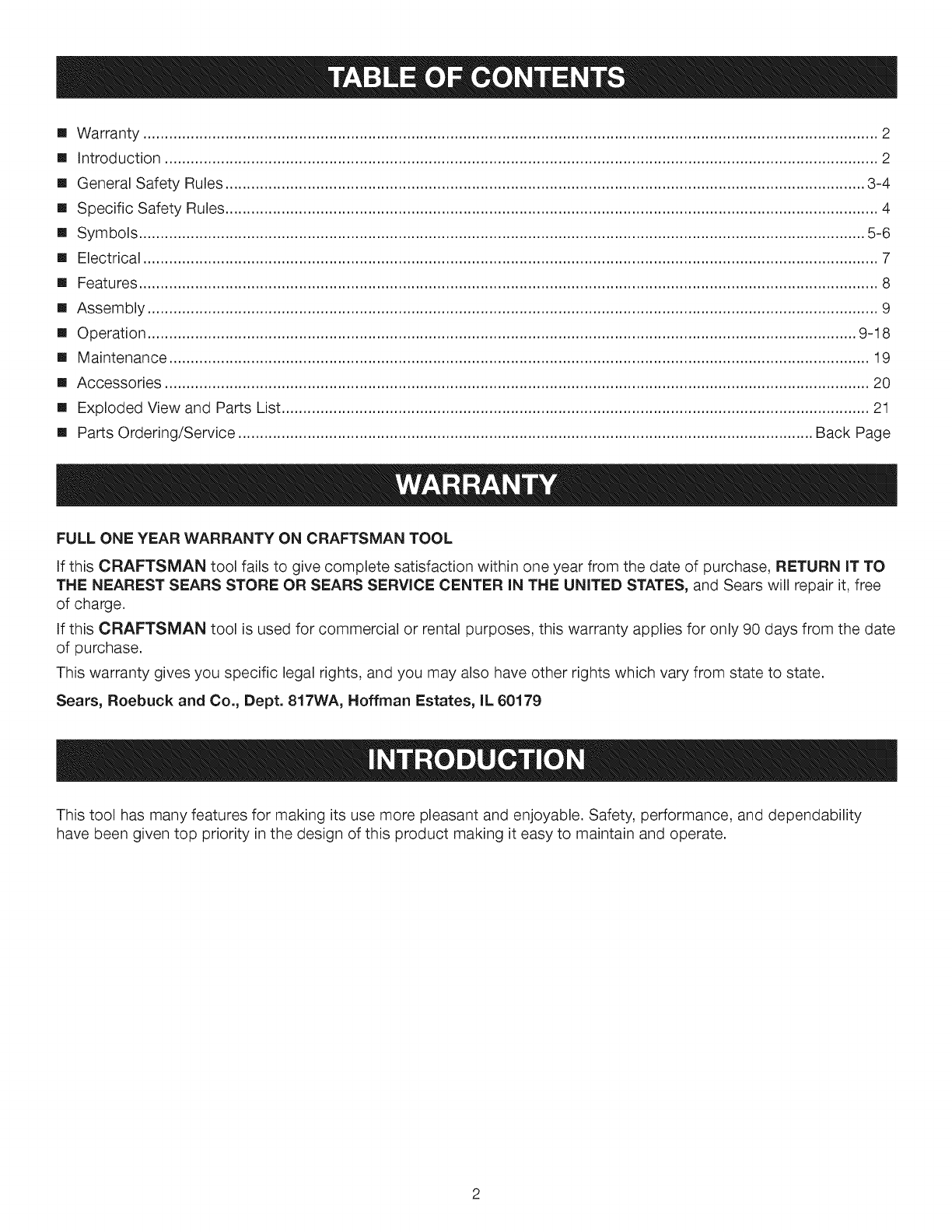 If this CRAFTSMAN tool fails to give complete satisfaction within one year from the date of purchase, RETURN IT TO