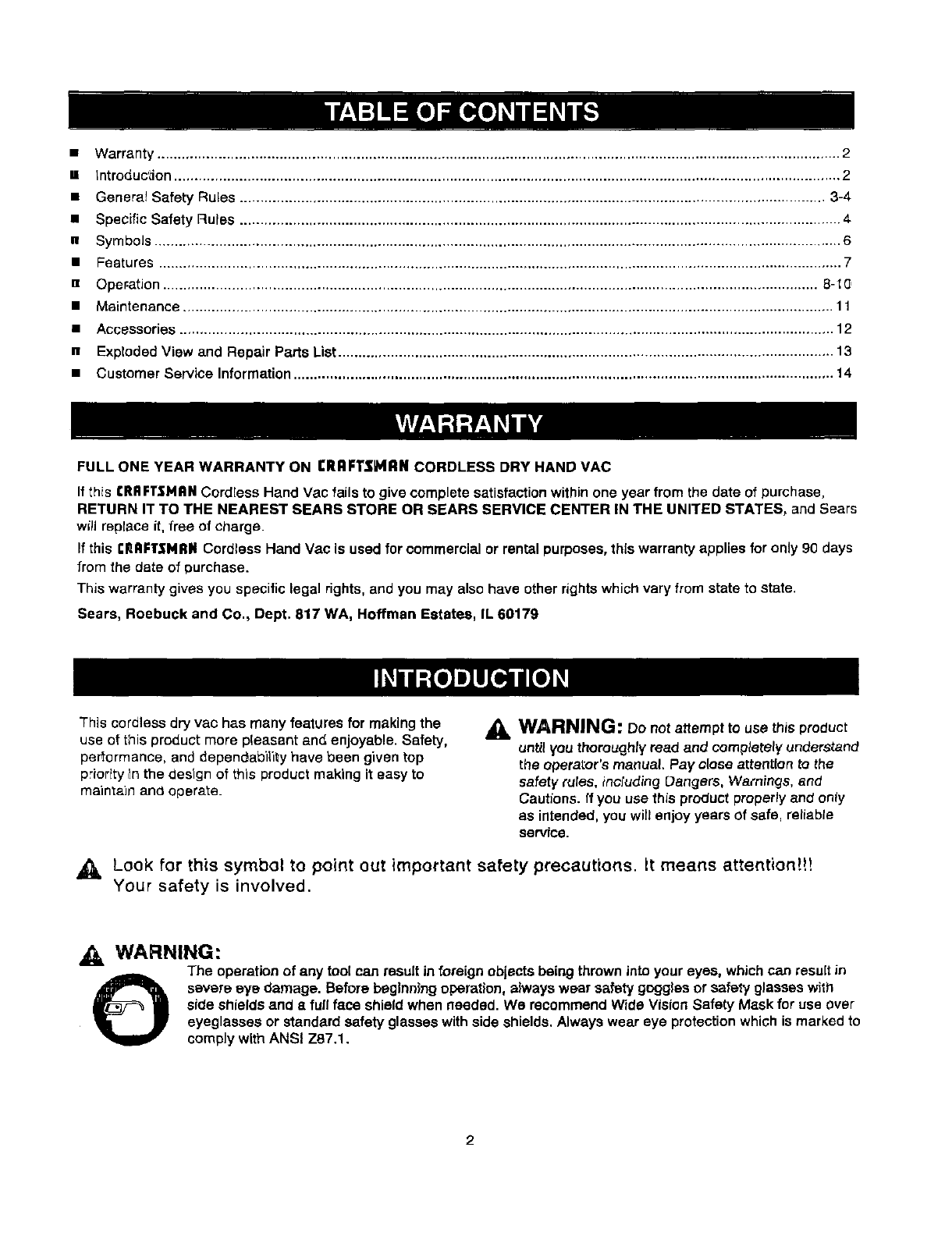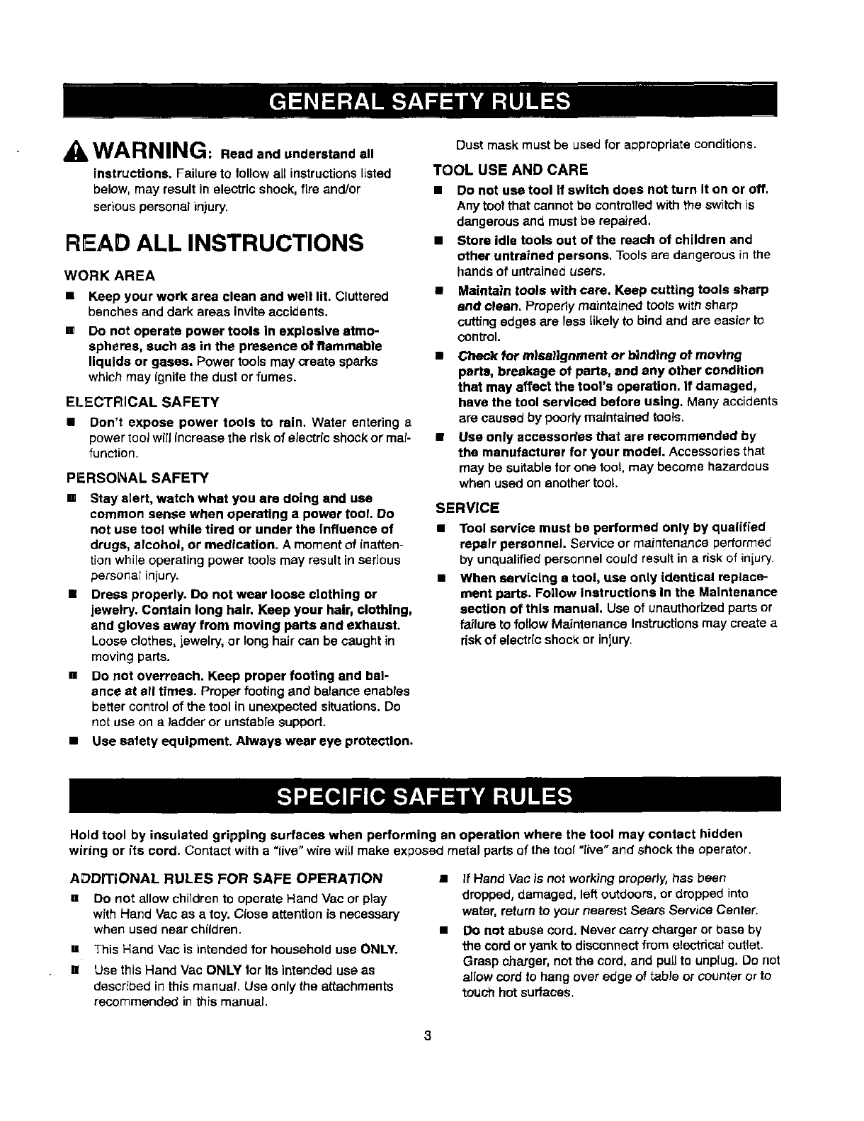 Craftsman 315177530 User Manual HAND VAC Manuals And Guides L0311027