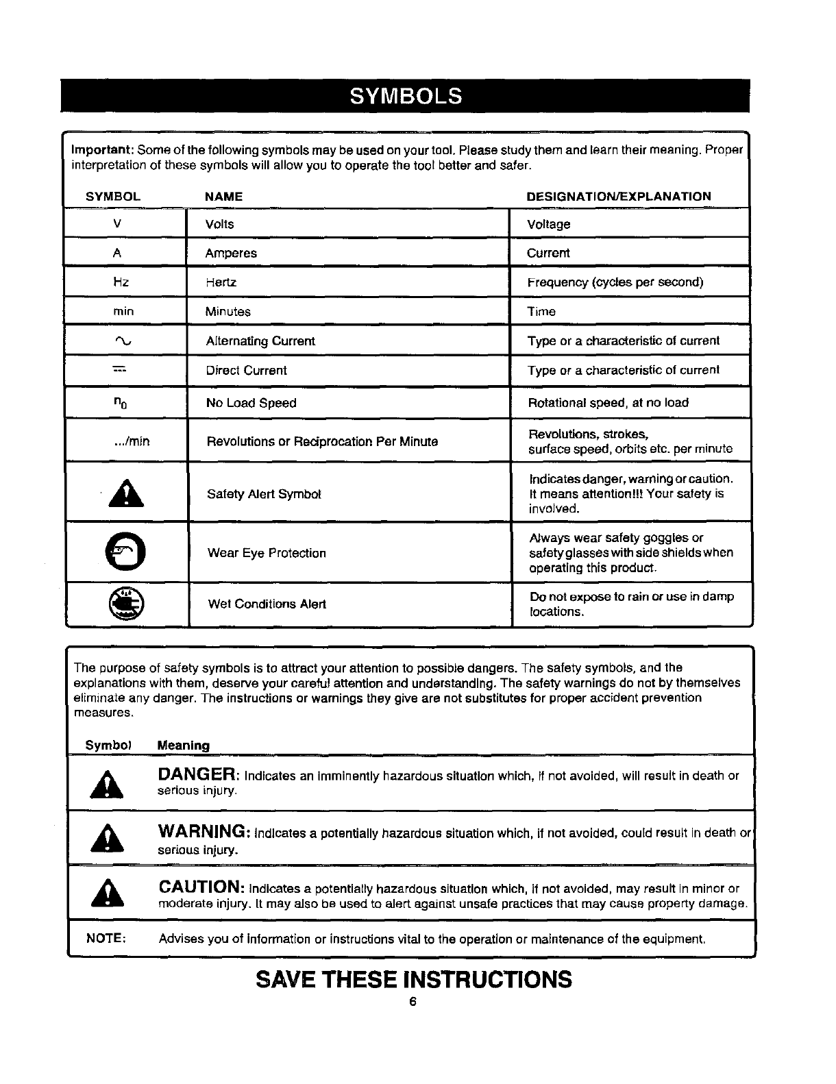 safety rules, including Dangers, Warnings, arid