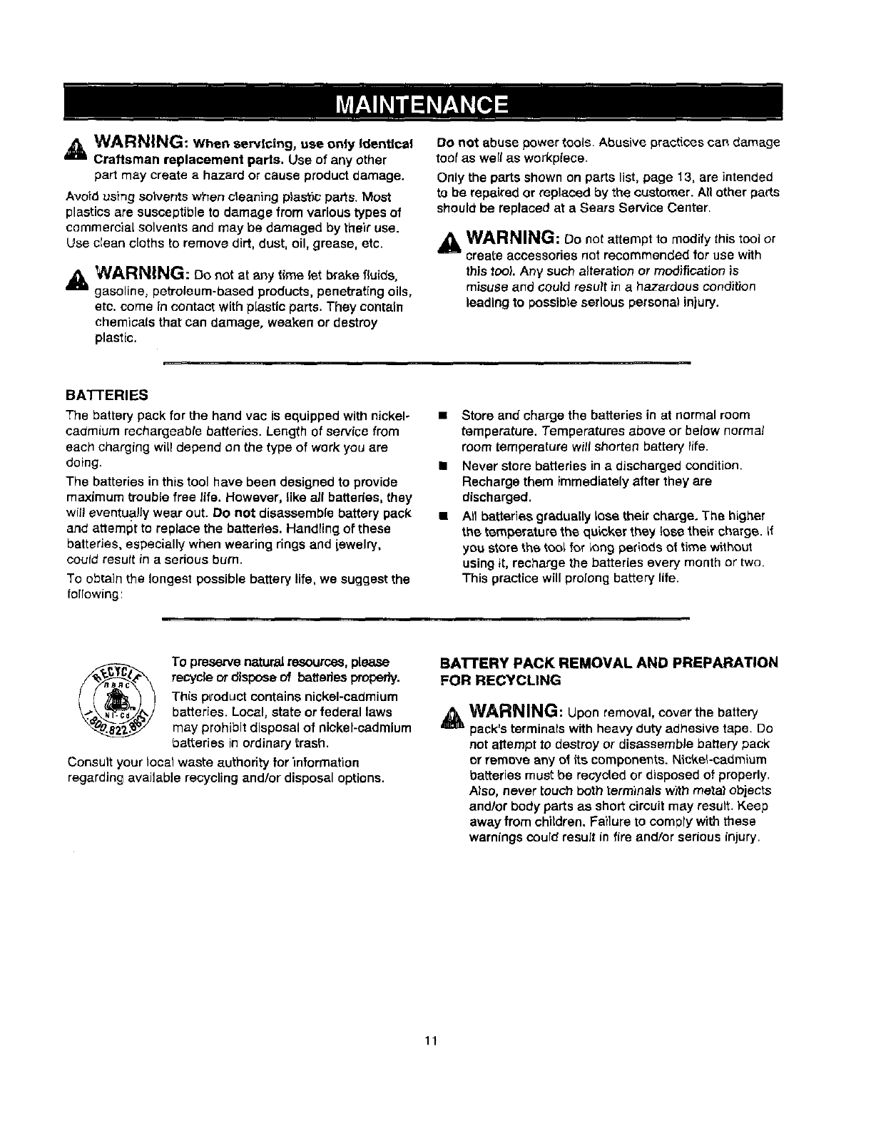 or remove any of its components. Nickel-cadmium