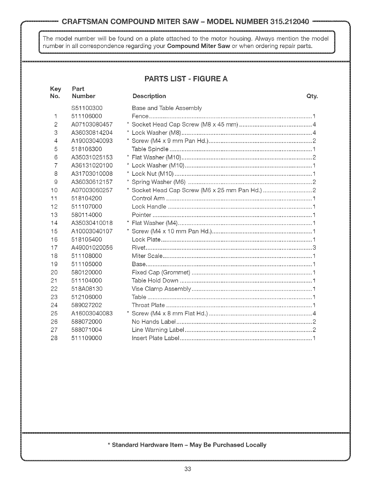 User Manual: Craftsman 315212040 315212040 CRAFTSMAN 10 COMPOUND MITER SAW - Manuals and Guides View the owners manual for your CRAFTSMAN 10 COMPOUND MITER SAW #315212040. Home:Tool Parts:Craftsman Parts:Craftsman 10 COMPOUND MITER SAW Manual