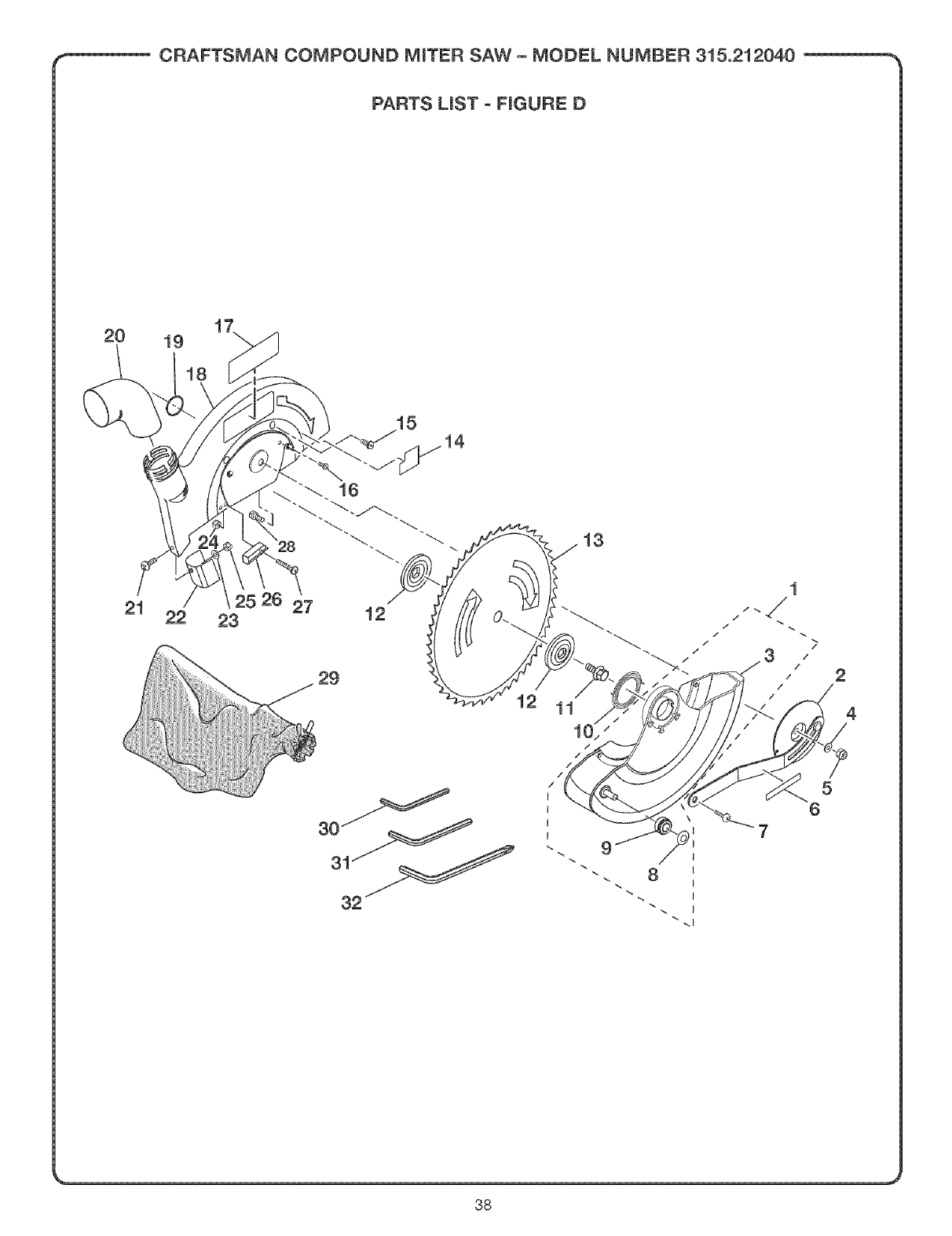 CRAFTSMAN COMPOUND MITER SAW -MODEL NUMBER 315o212040