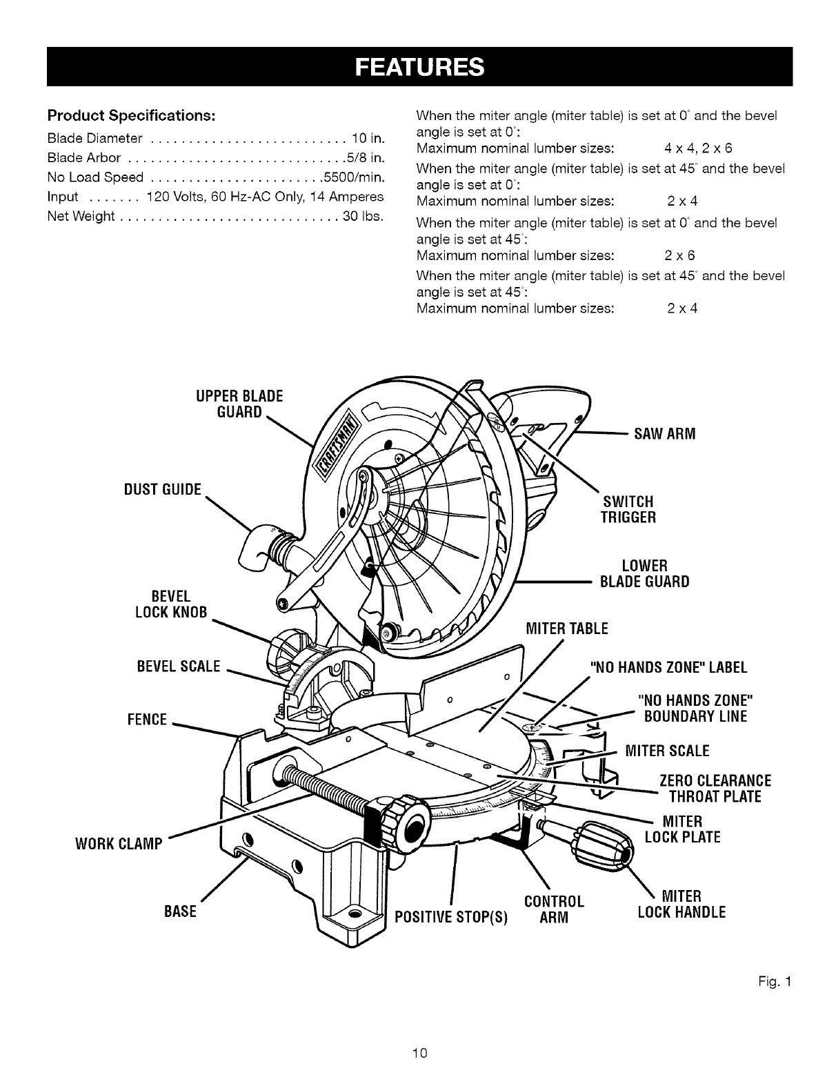 Craftsman 315212040 User Manual 10 COMPOUND MITER SAW Manuals And Guides L0410517
