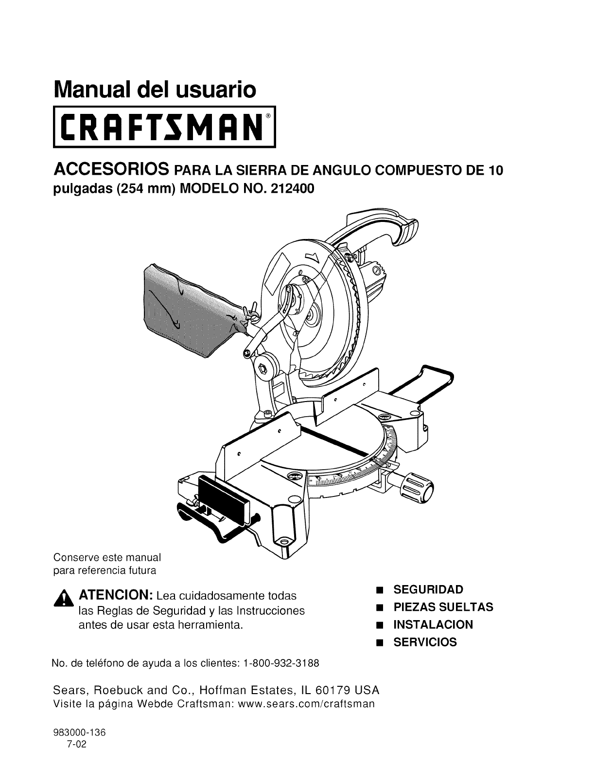 User Manual: Craftsman 315212400 315212400 CRAFTSMAN MITER SAW - Manuals and Guides View the owners manual for your CRAFTSMAN MITER SAW #315212400. Home:Tool Parts:Craftsman Parts:Craftsman MITER SAW Manual