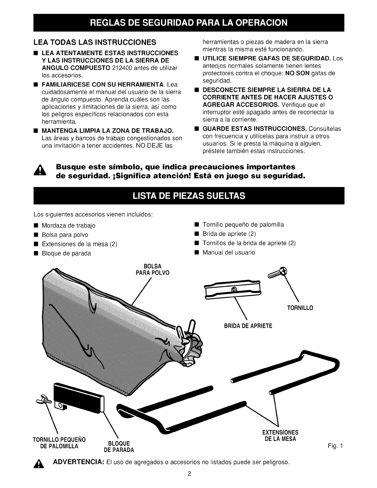,_ ADVERTENClA: El uso de agregados o accesorios no listados puede ser peligroso.