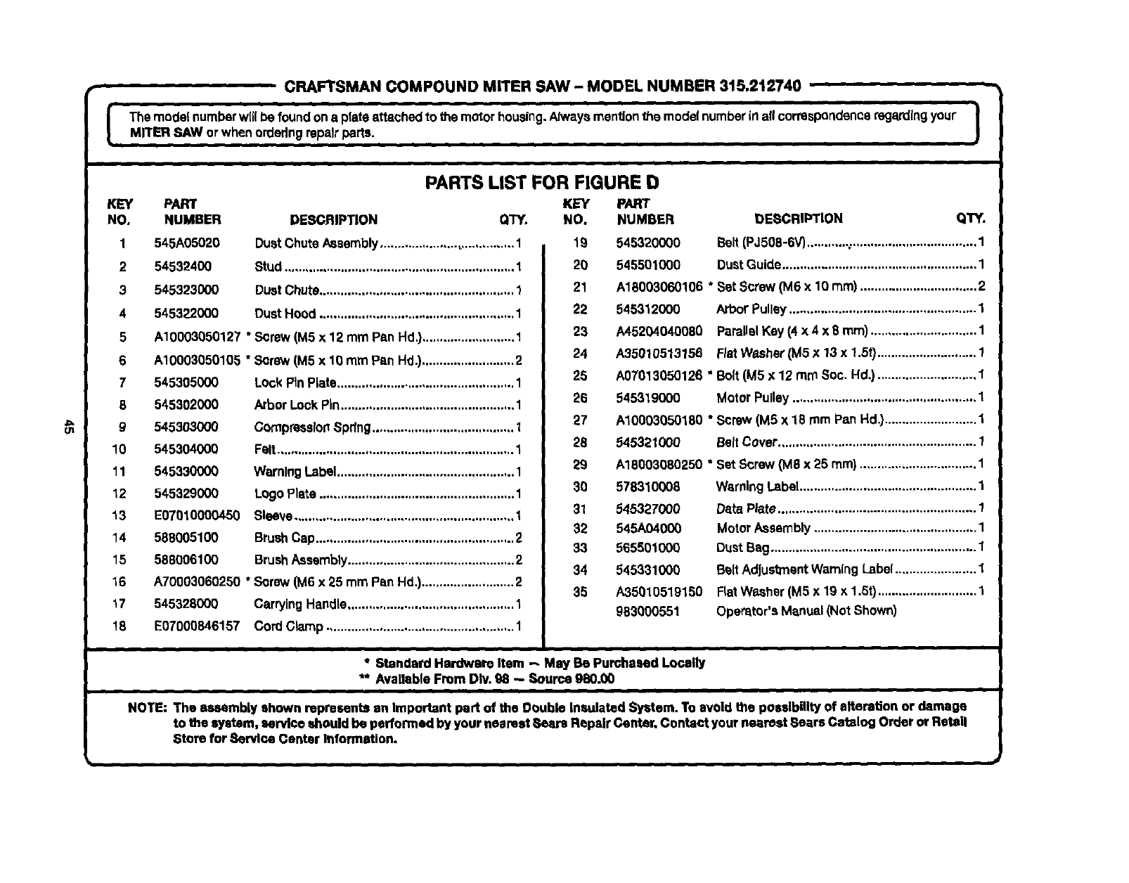 Craftsman 315212740 User Manual MITER SAW Manuals And Guides L0411411