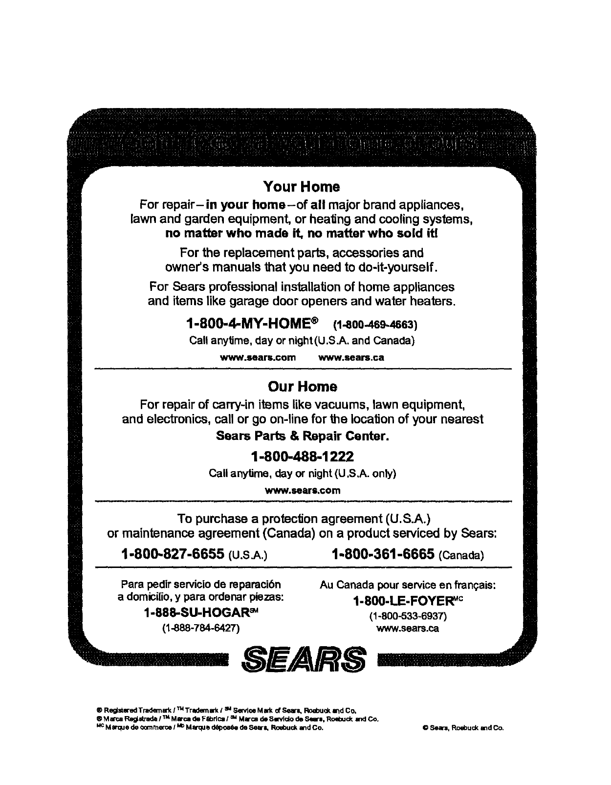 CONTACT THE NEAREST SEARS PARTS &REPAIR CENTER at 1-800-4-SV-M_:HOMEOand Searswill repairIt, free of