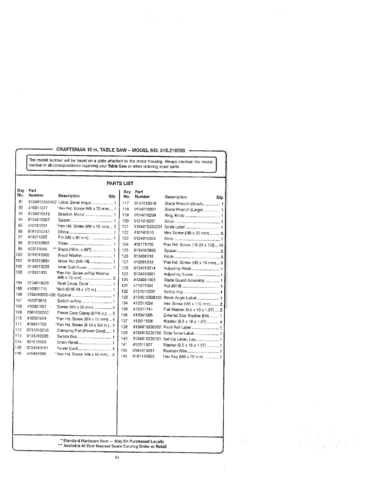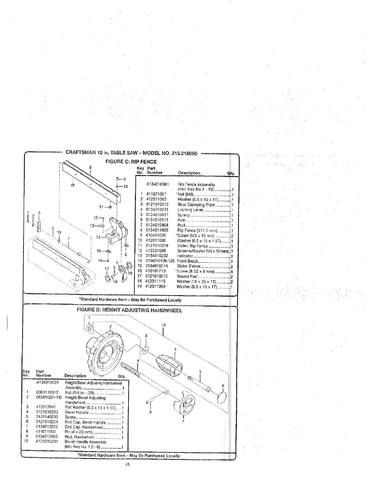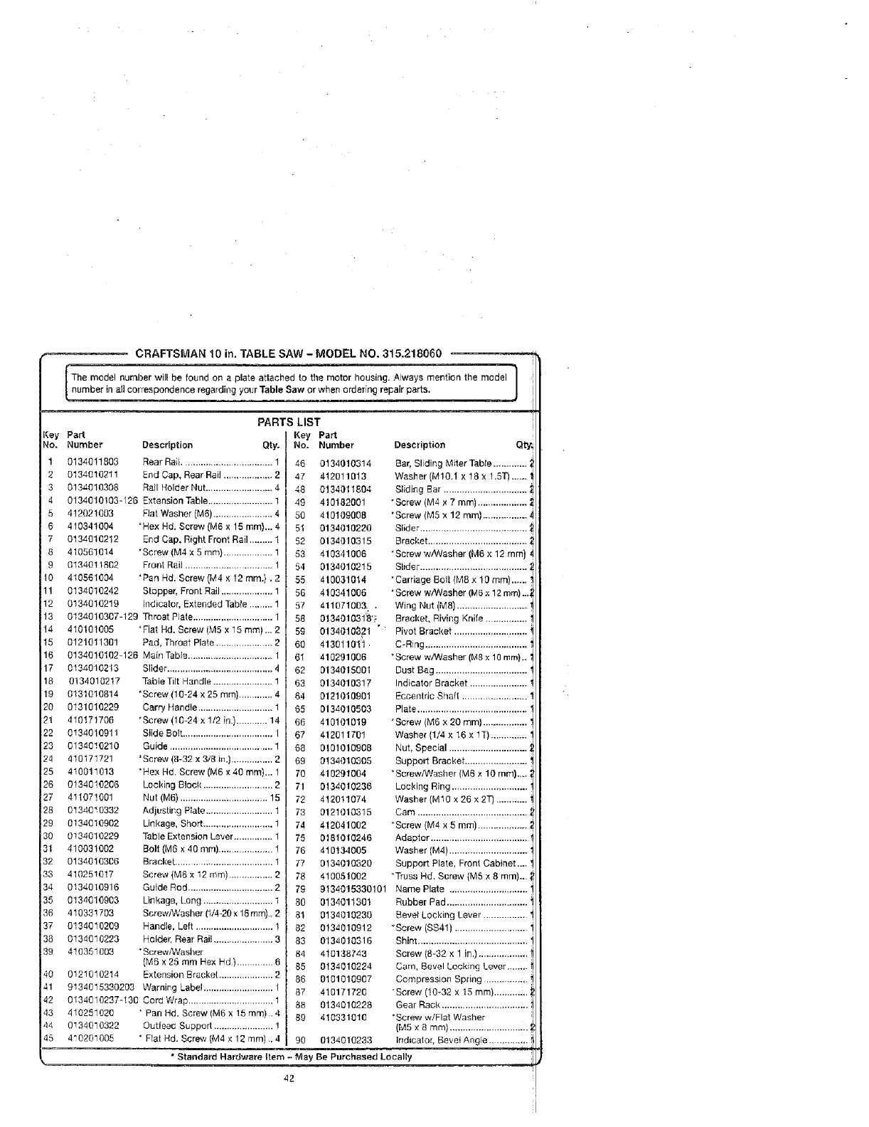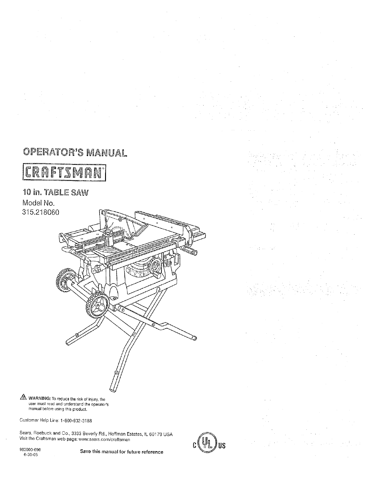 User Manual: Craftsman 315218060 315218060 CRAFTSMAN TABLE SAW - Manuals and Guides View the owners manual for your CRAFTSMAN TABLE SAW #315218060. Home:Tool Parts:Craftsman Parts:Craftsman TABLE SAW Manual
