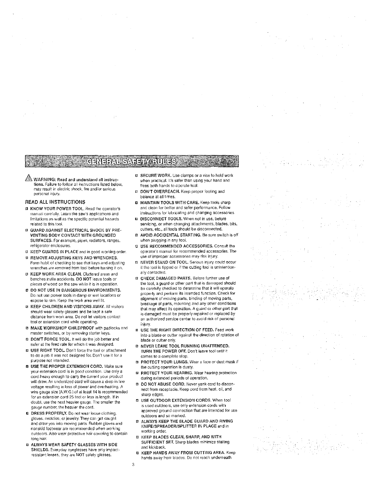 13 KNOW YOUR POWER TOOL. Read the operator's