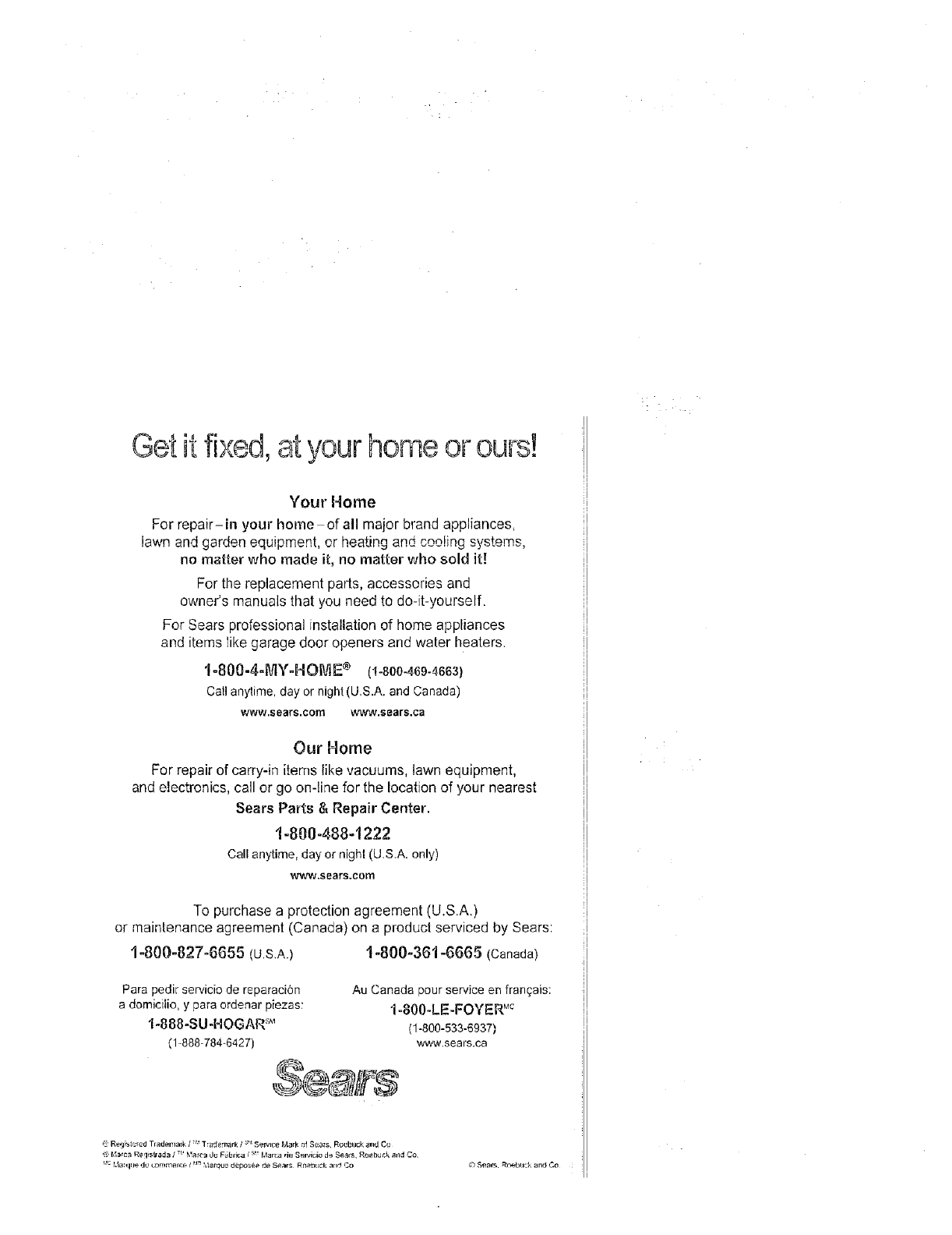 or mainlenance agreement (Canada) on a product serviced by Sears: