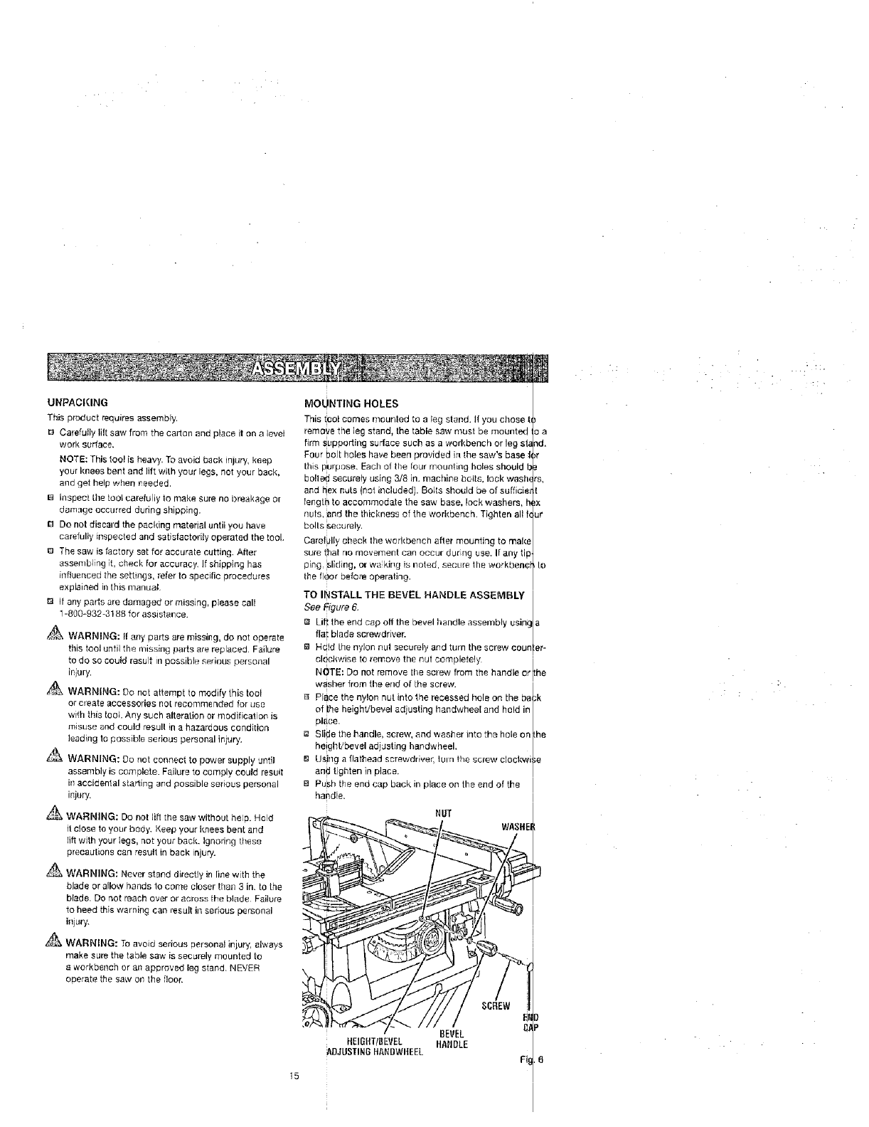 CRAFTSMAN Saw Table Manual L0710064 CRAFTSMAN Saw Table Owner's Manual, CRAFTSMAN Saw Table installation guides