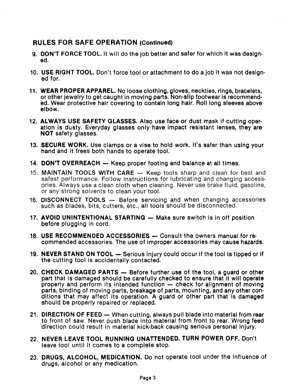 9. DON'T FORCE TOOL. It will do the job better and safer for which it was design-