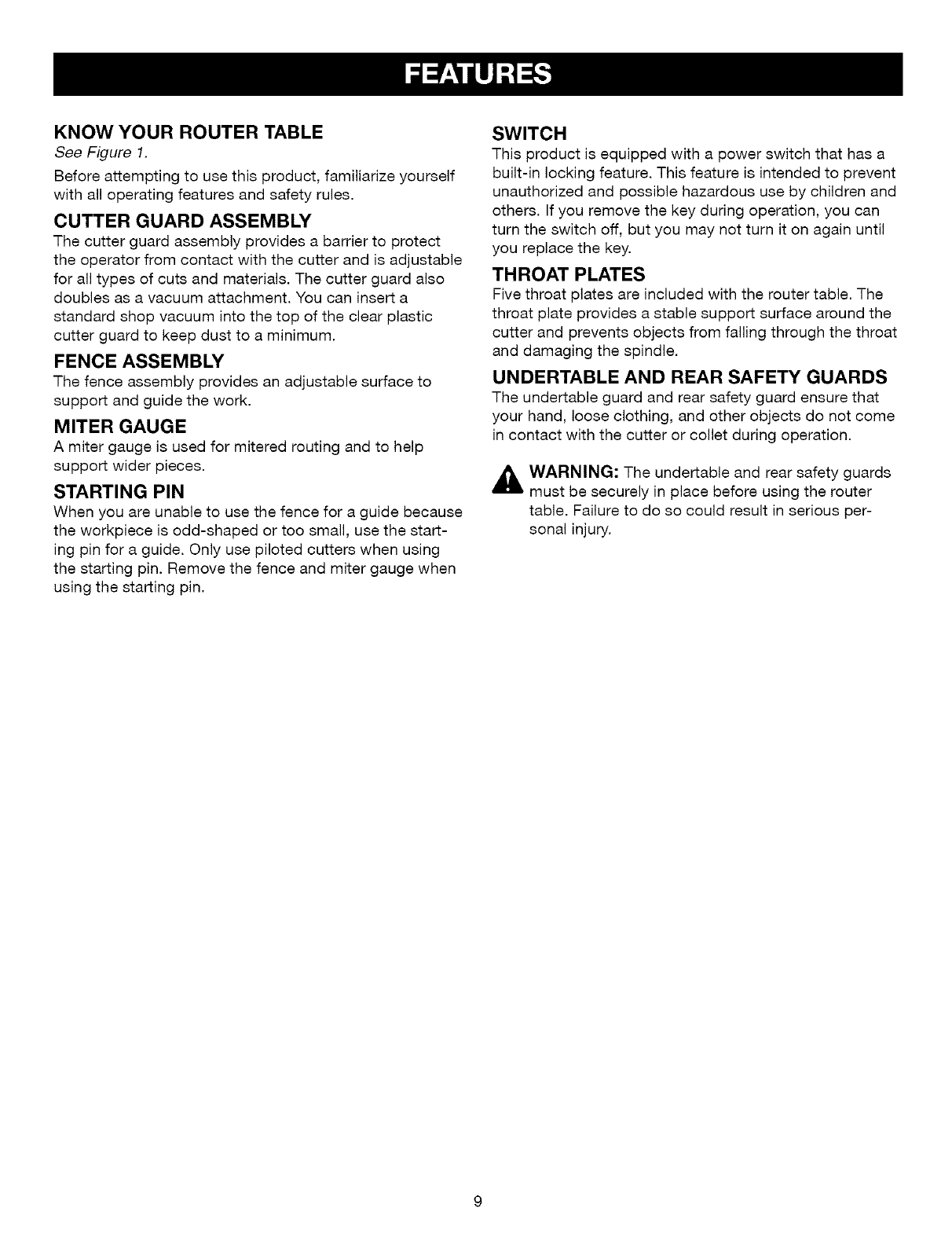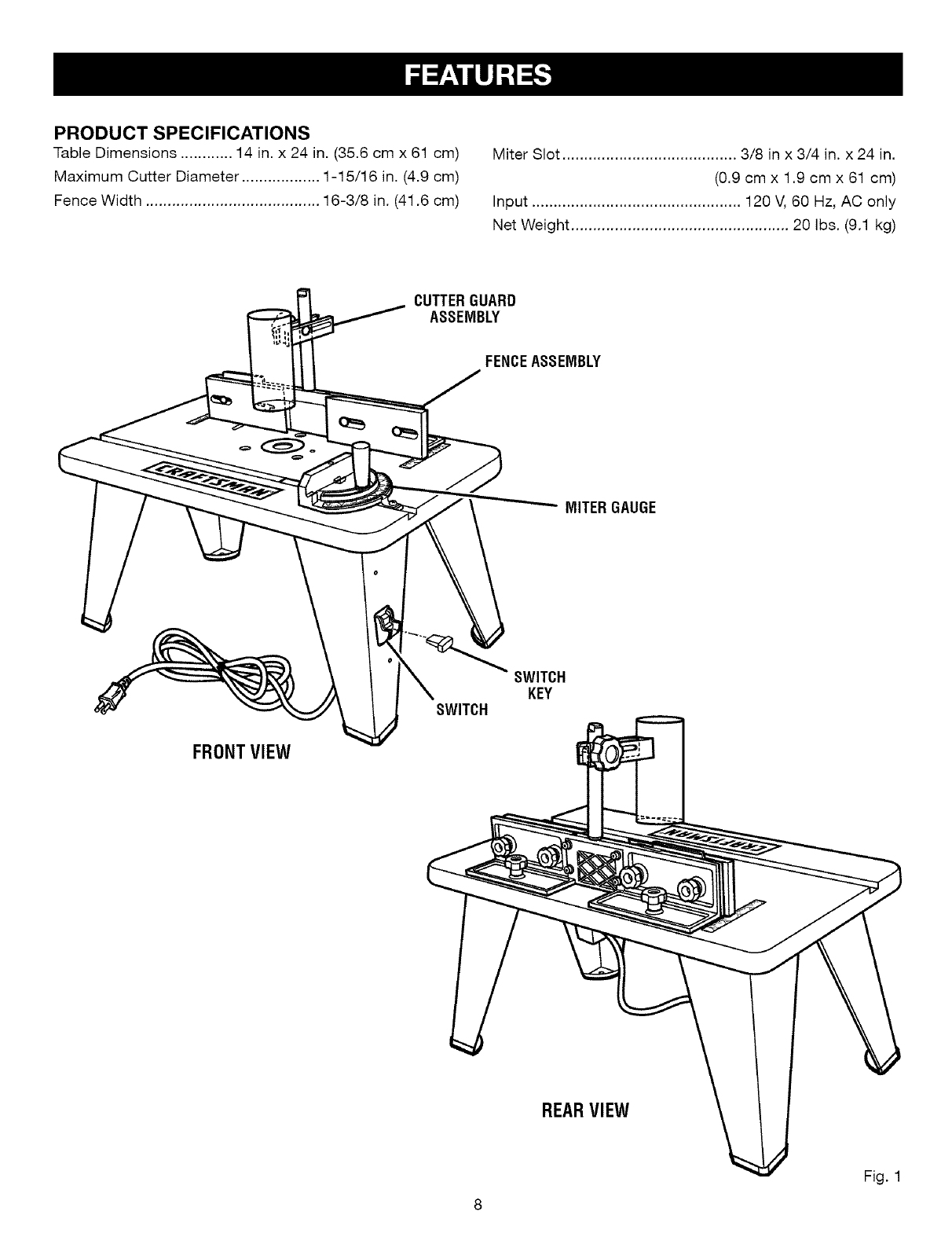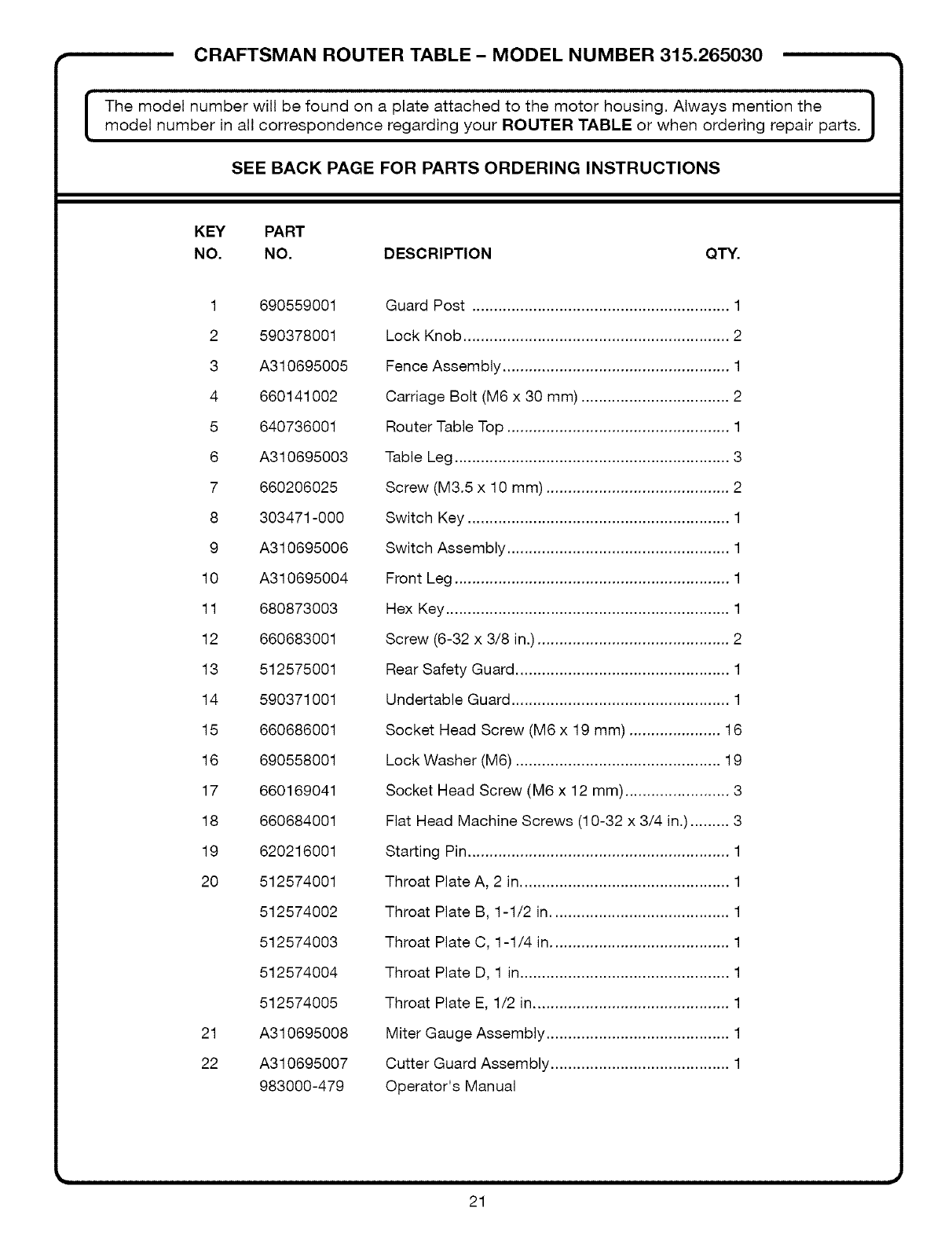 •CRAFTSMAN ROUTER TABLE- MODEL NUMBER 315.265030 •