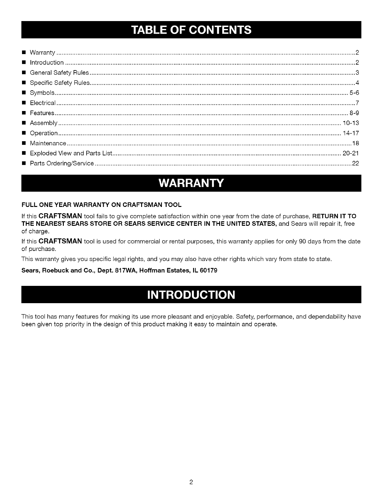 If this CRAFTSMAN tool fails to give complete satisfaction within one year from the date of purchase, RETURN IT TO