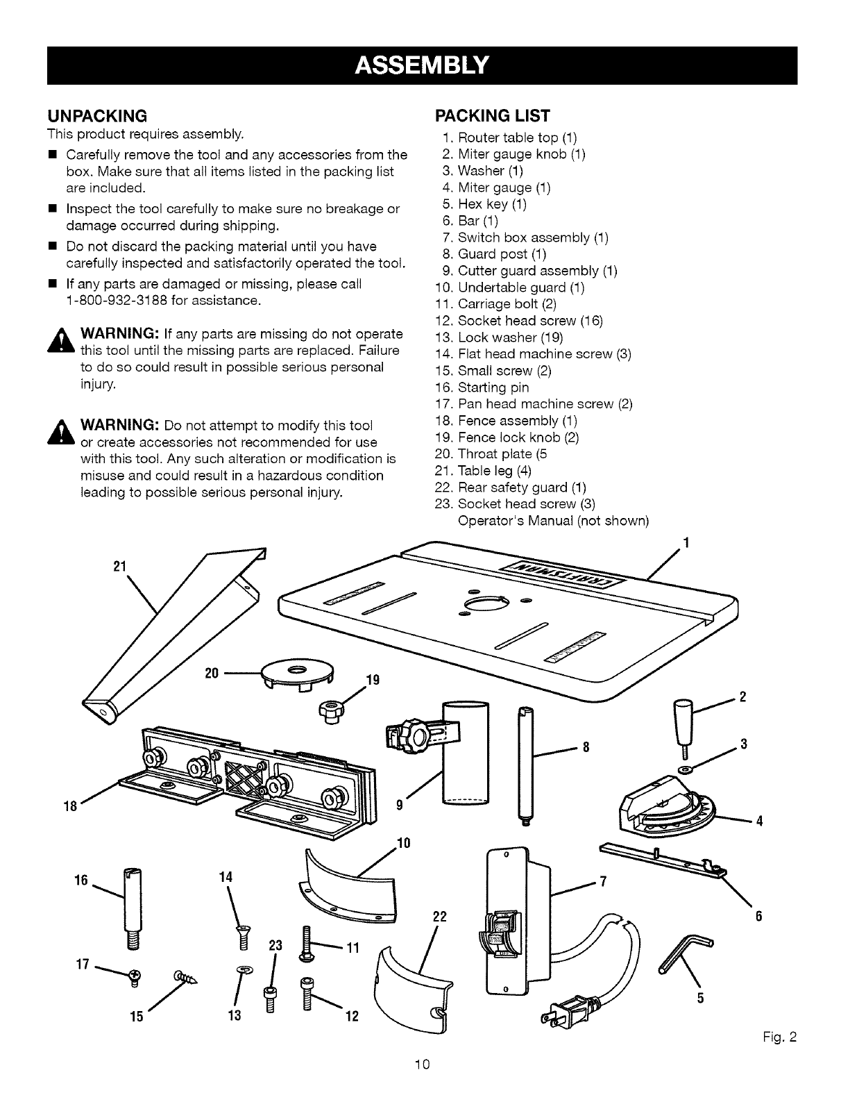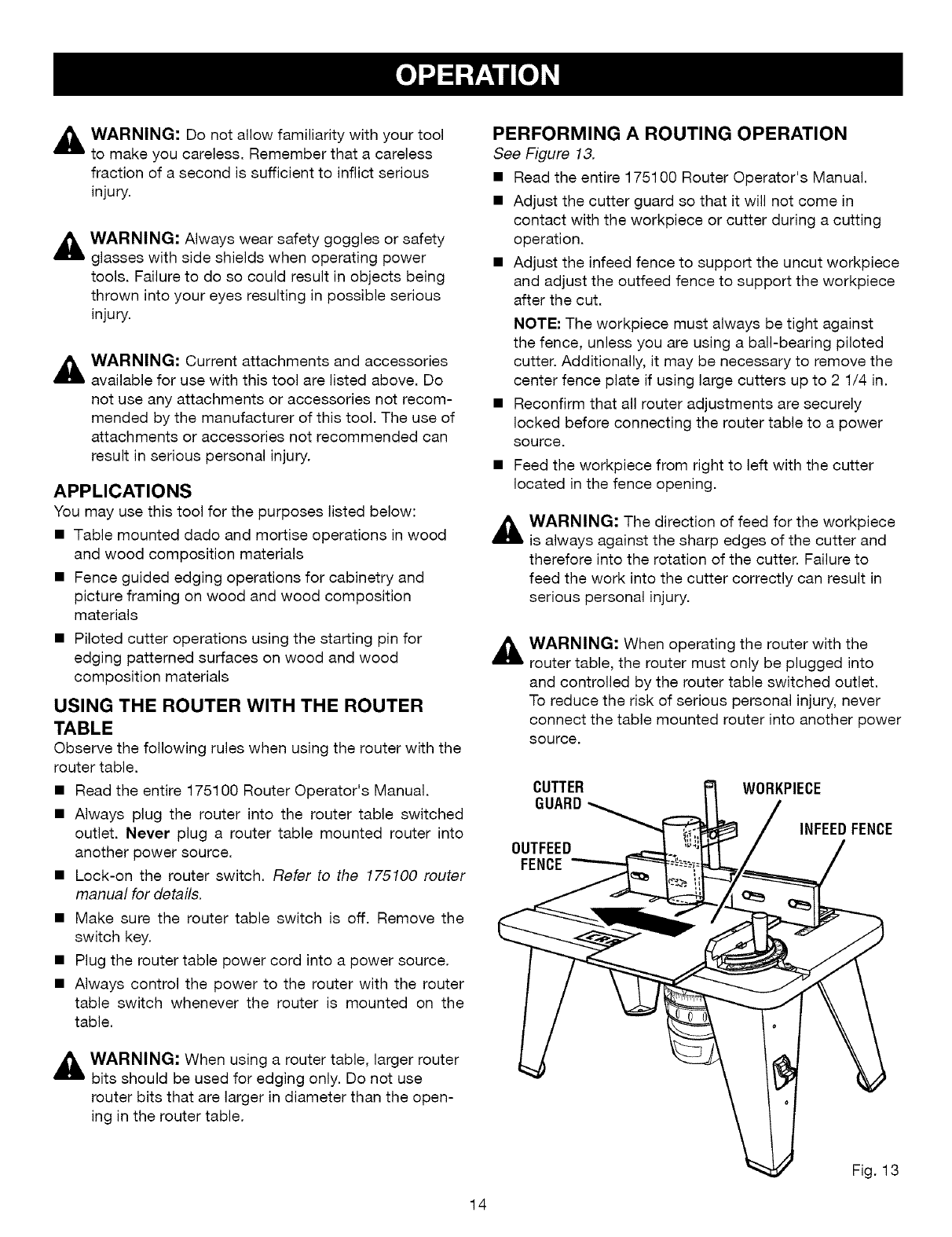 Craftsman 315265030 User Manual ROUTER TABLE Manuals And Guides L0408626