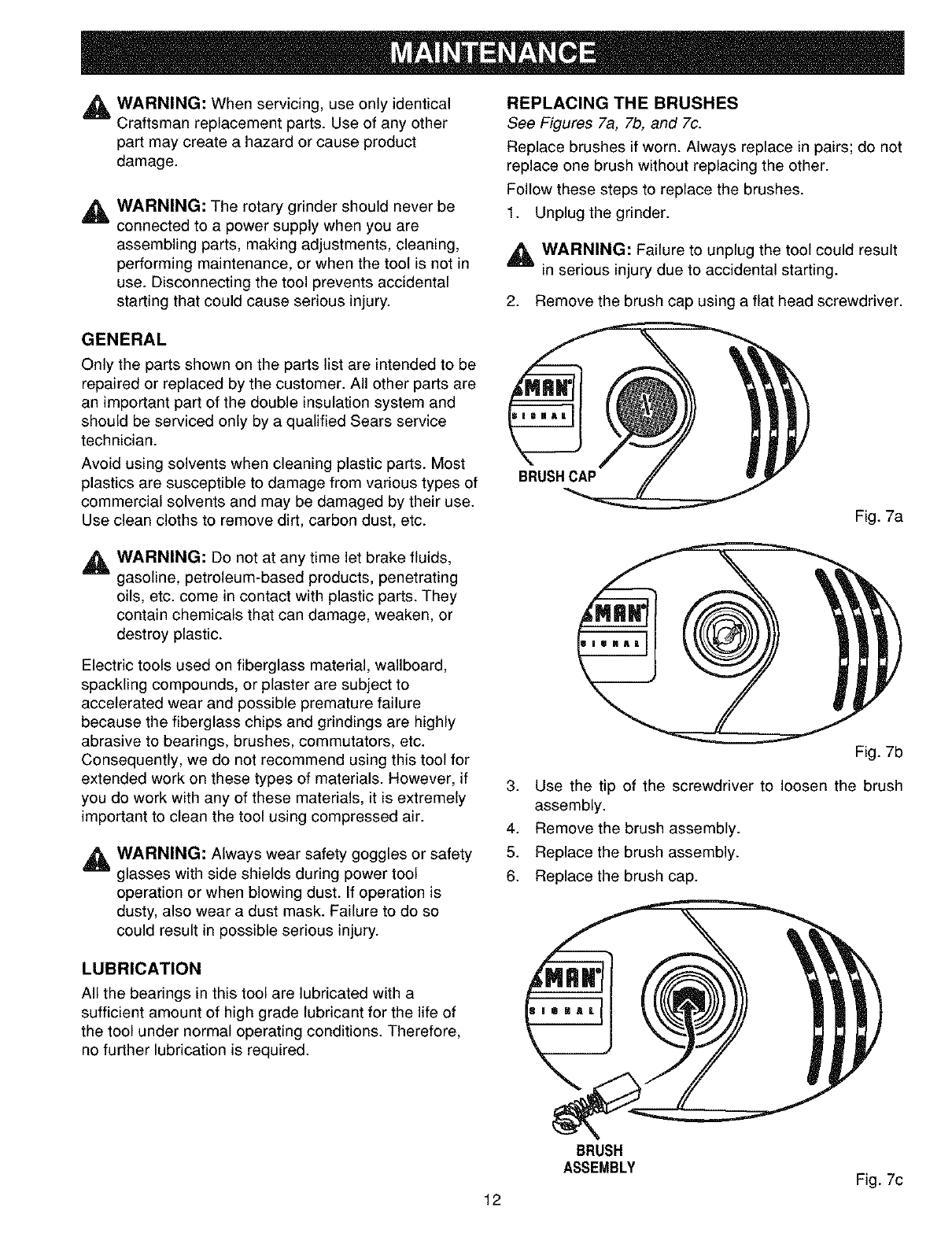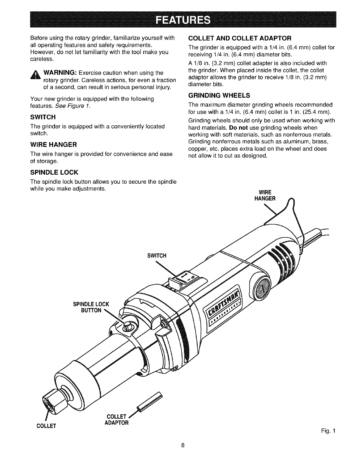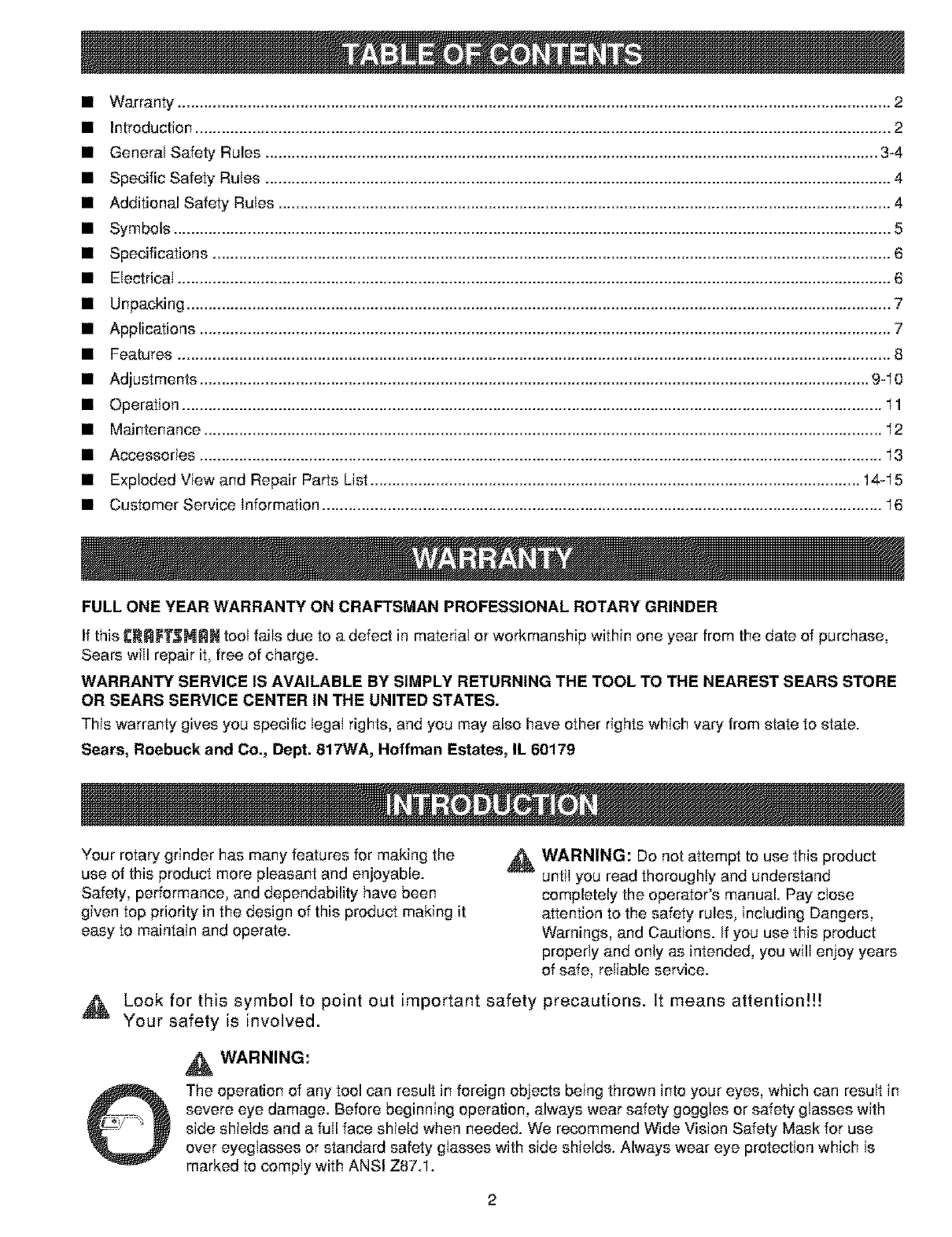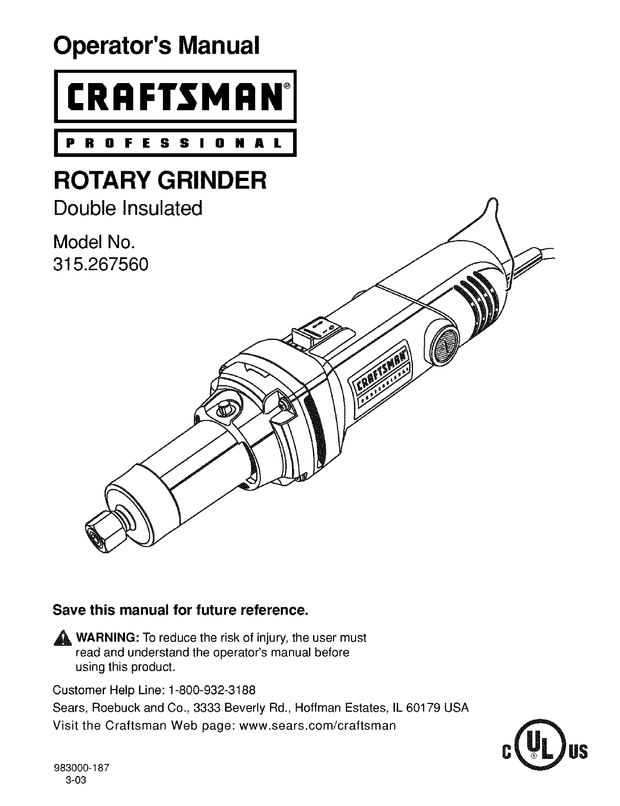 User Manual: Craftsman 315267560 315267560 CRAFTSMAN ROTARY GRINDER - Manuals and Guides View the owners manual for your CRAFTSMAN ROTARY GRINDER #315267560.