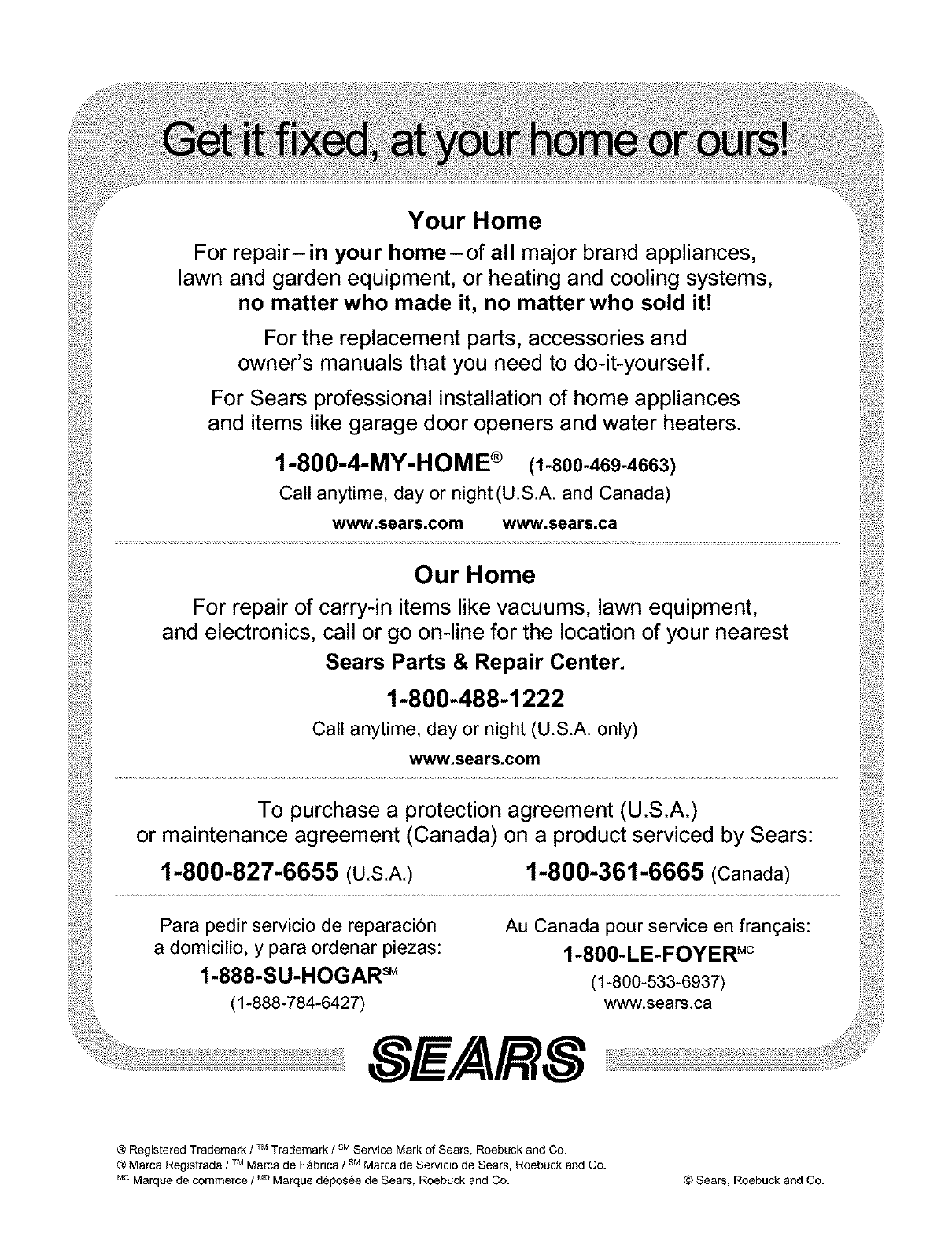 ® Marca Registrada /Marca de F_brica /Marca de Servicio de Sears, Roebuck and Co.