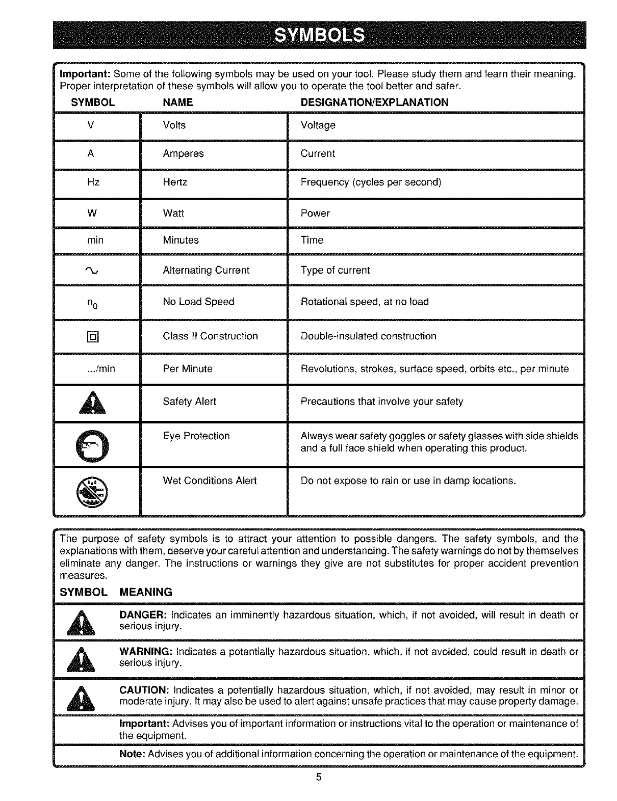 attention to the safety rules, including Dangers,