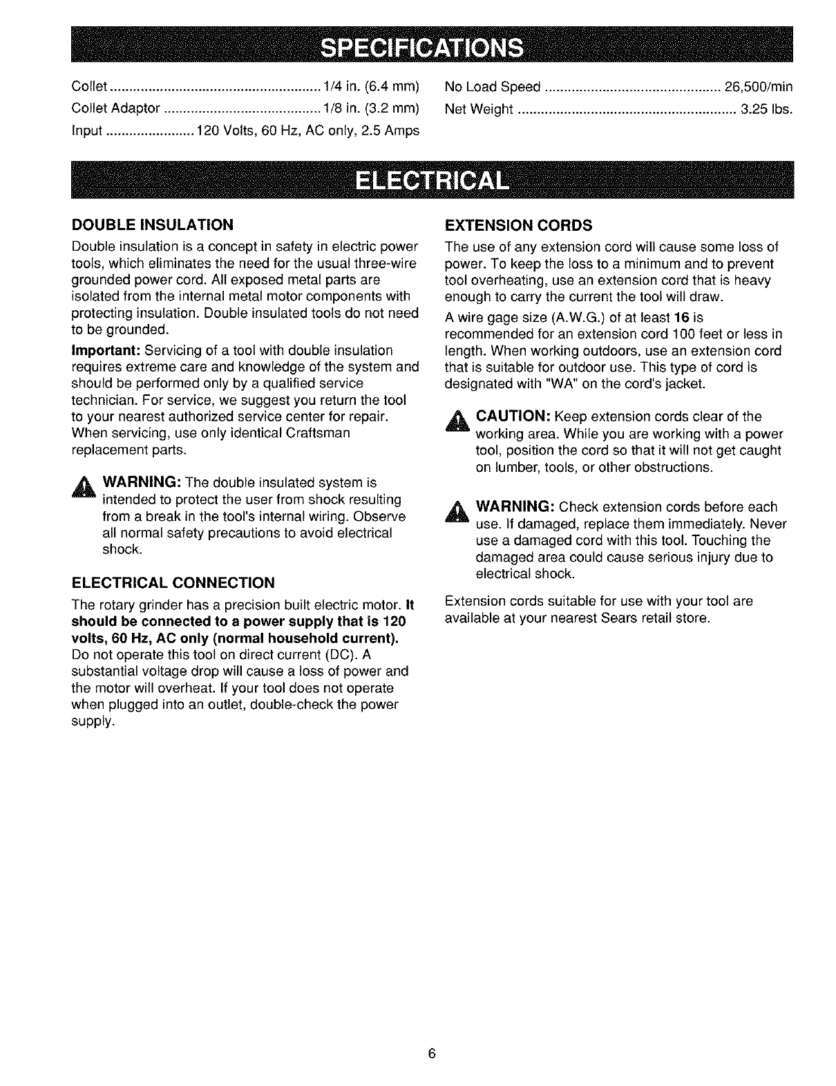 Craftsman 315267560 User Manual ROTARY GRINDER Manuals And Guides L0401227