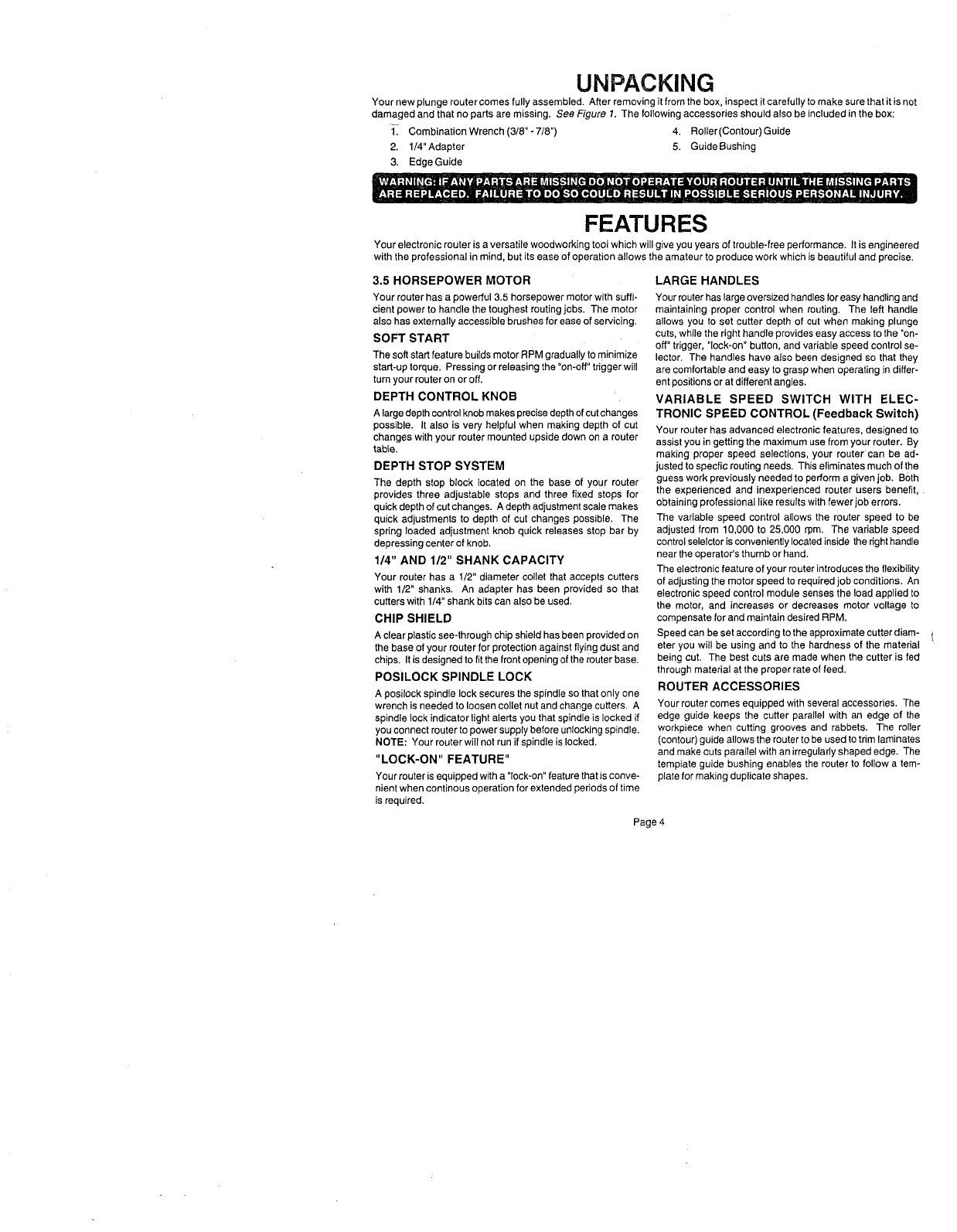FULL ONE YEAR WARRANTY ON CRAFTSMAN INDUSTRIAL ELECTRONIC PLUNGE ROUTER