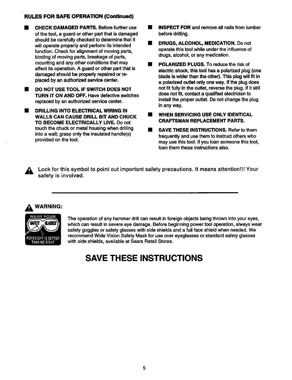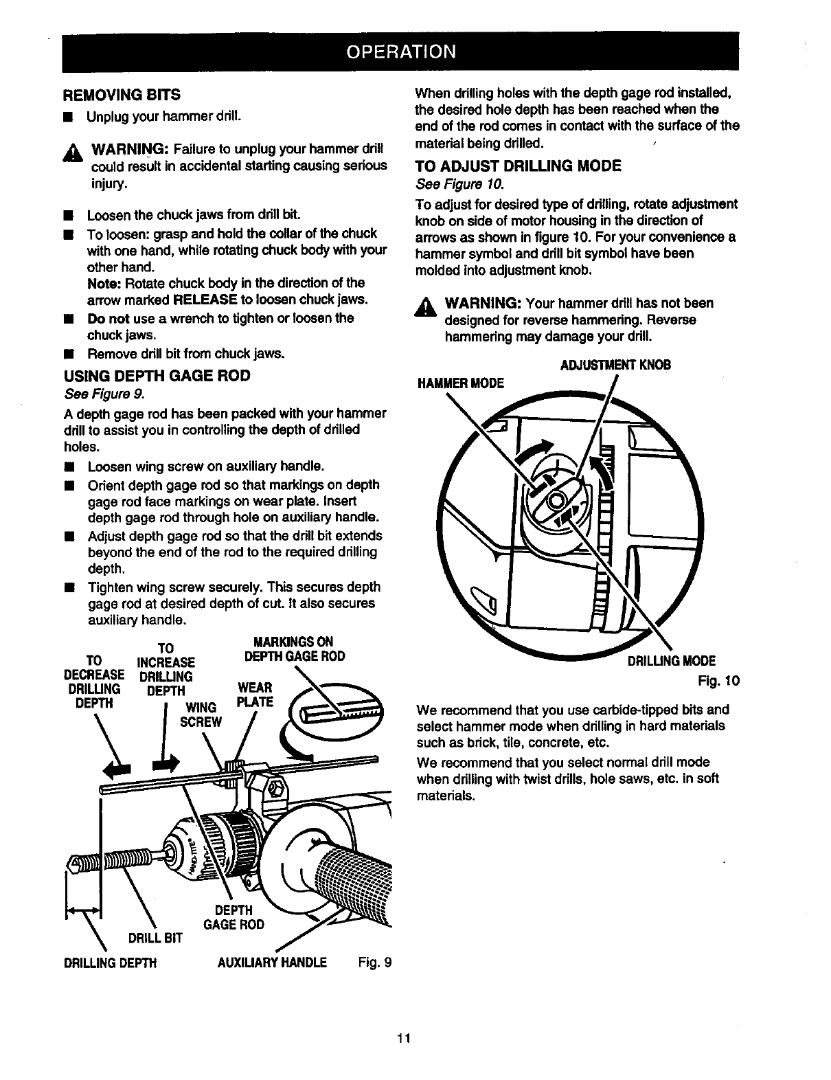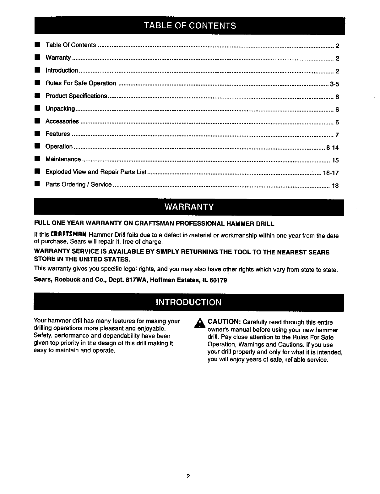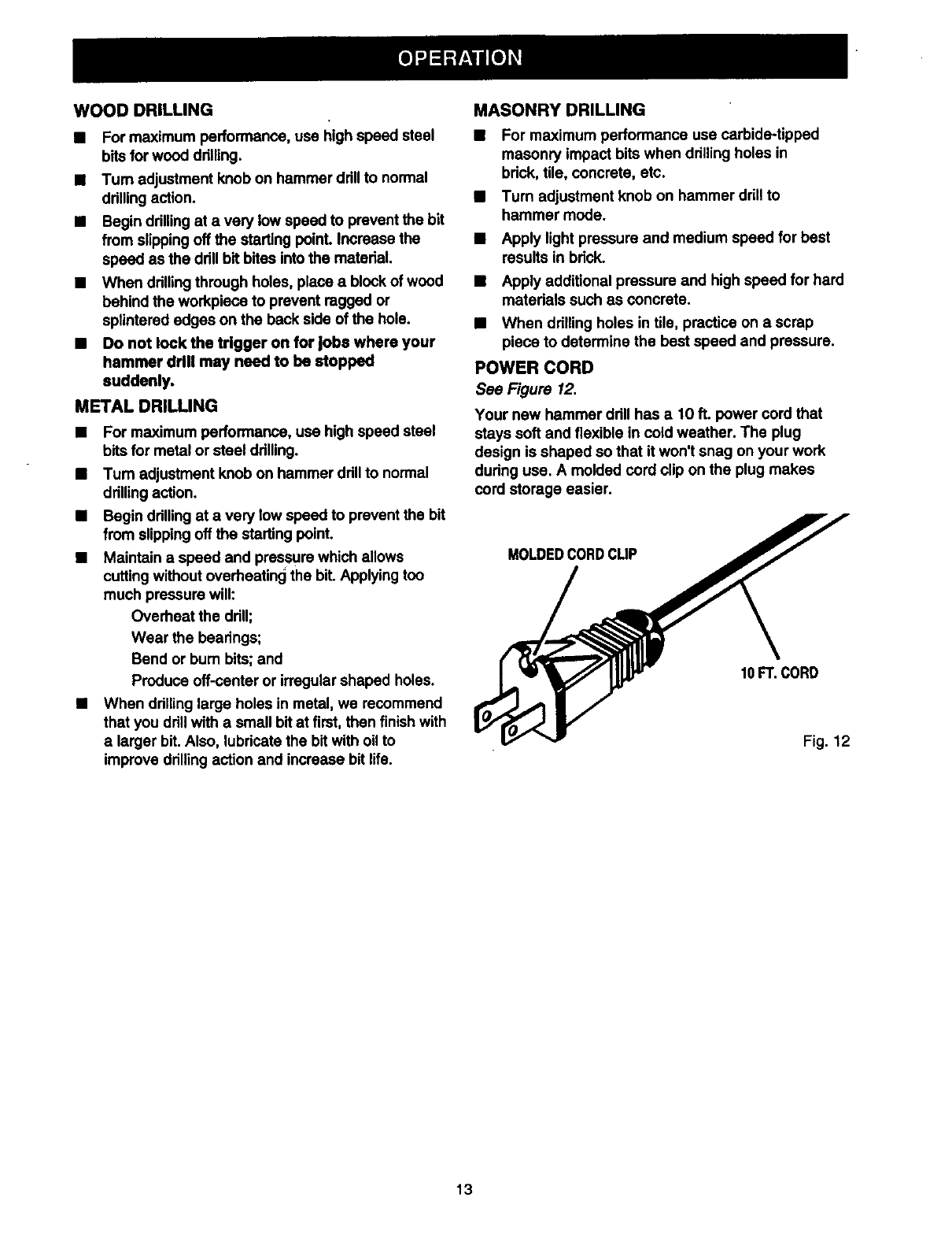 CRAFTSMAN Drill Hammer Manual 98110178 CRAFTSMAN Drill Hammer Owner's Manual, CRAFTSMAN Drill Hammer installation guides