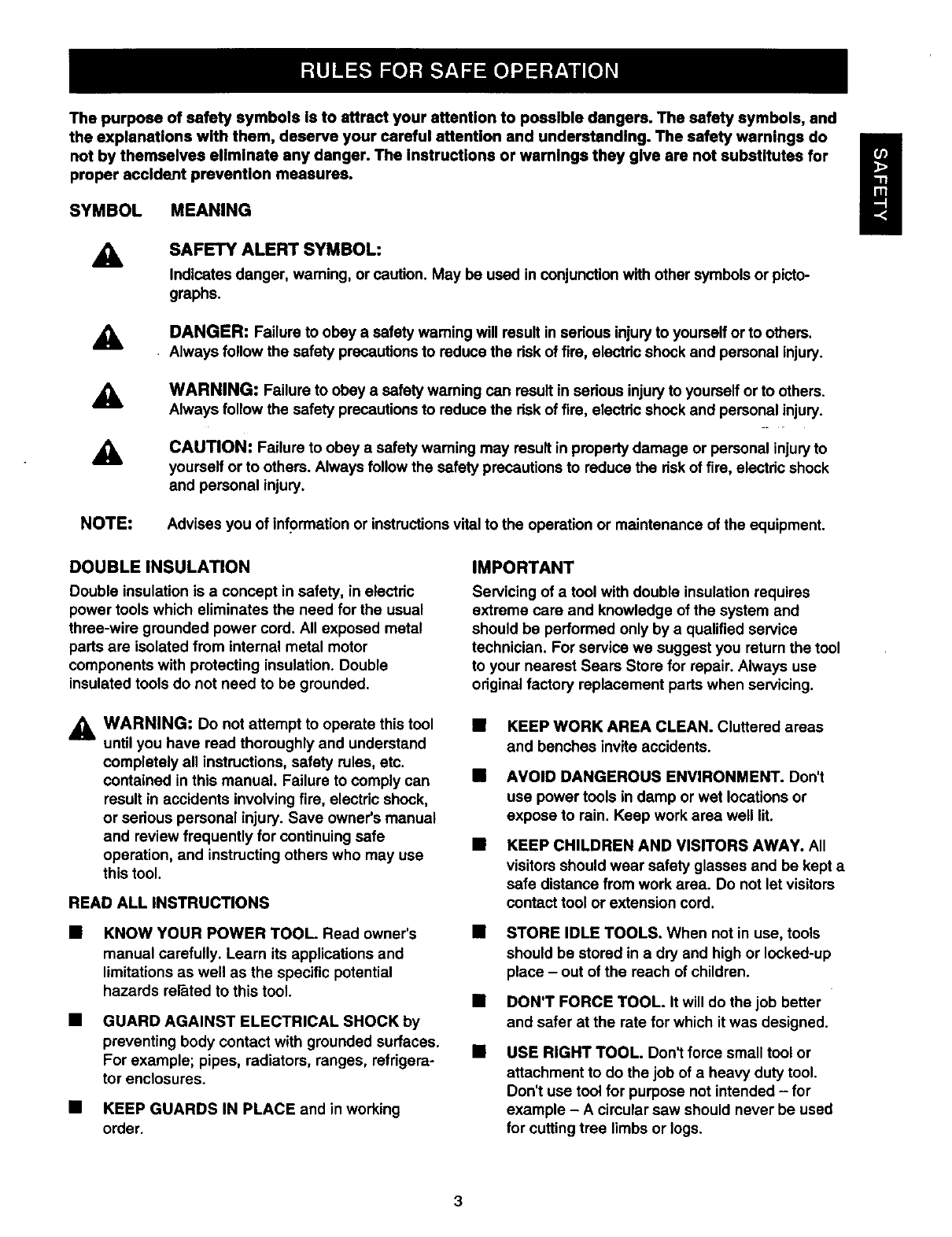 KNOW YOUR POWER TOOL. Read owner's