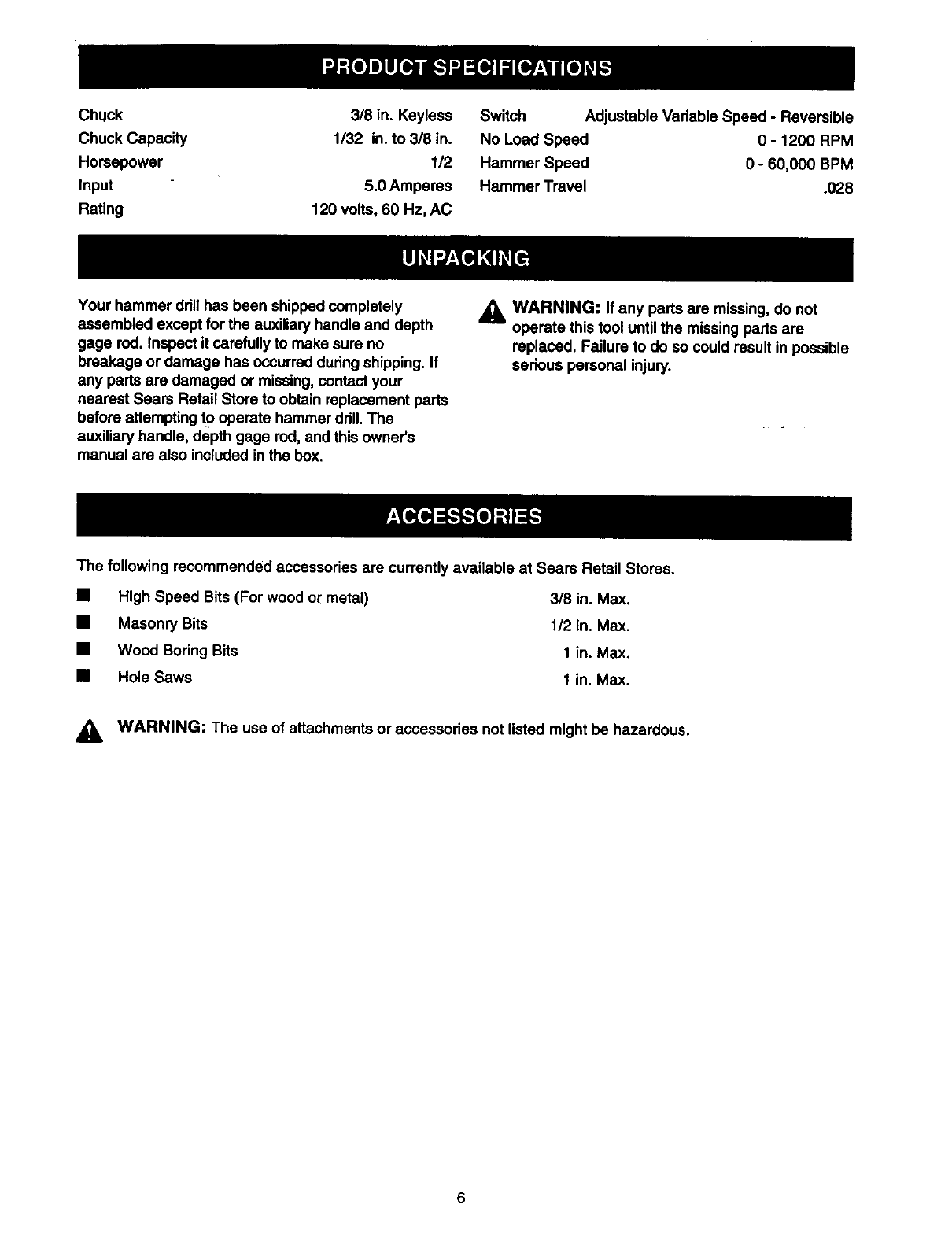 FULL ONE YEAR WARRANTY ON CRAFTSMAN PROFESSIONAL HAMMER DRILL