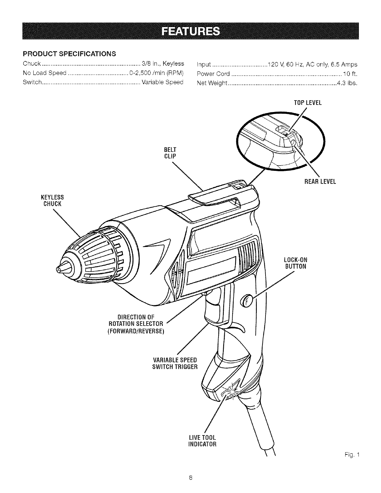 CRAFTSMAN 3/8 in. DRILL - MODEL NUMBER