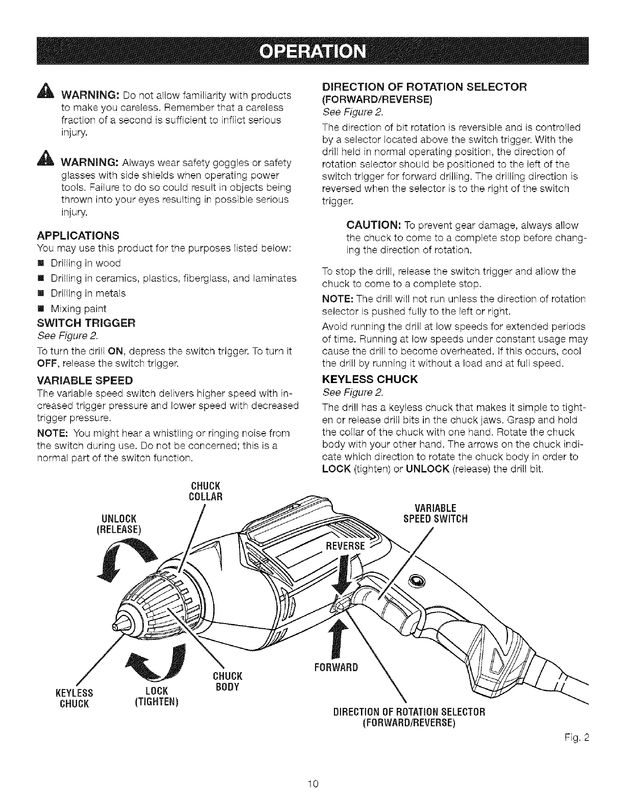 Craftsman 315281260 User Manual REAR HANDLE DRILL Manuals And Guides L0808129