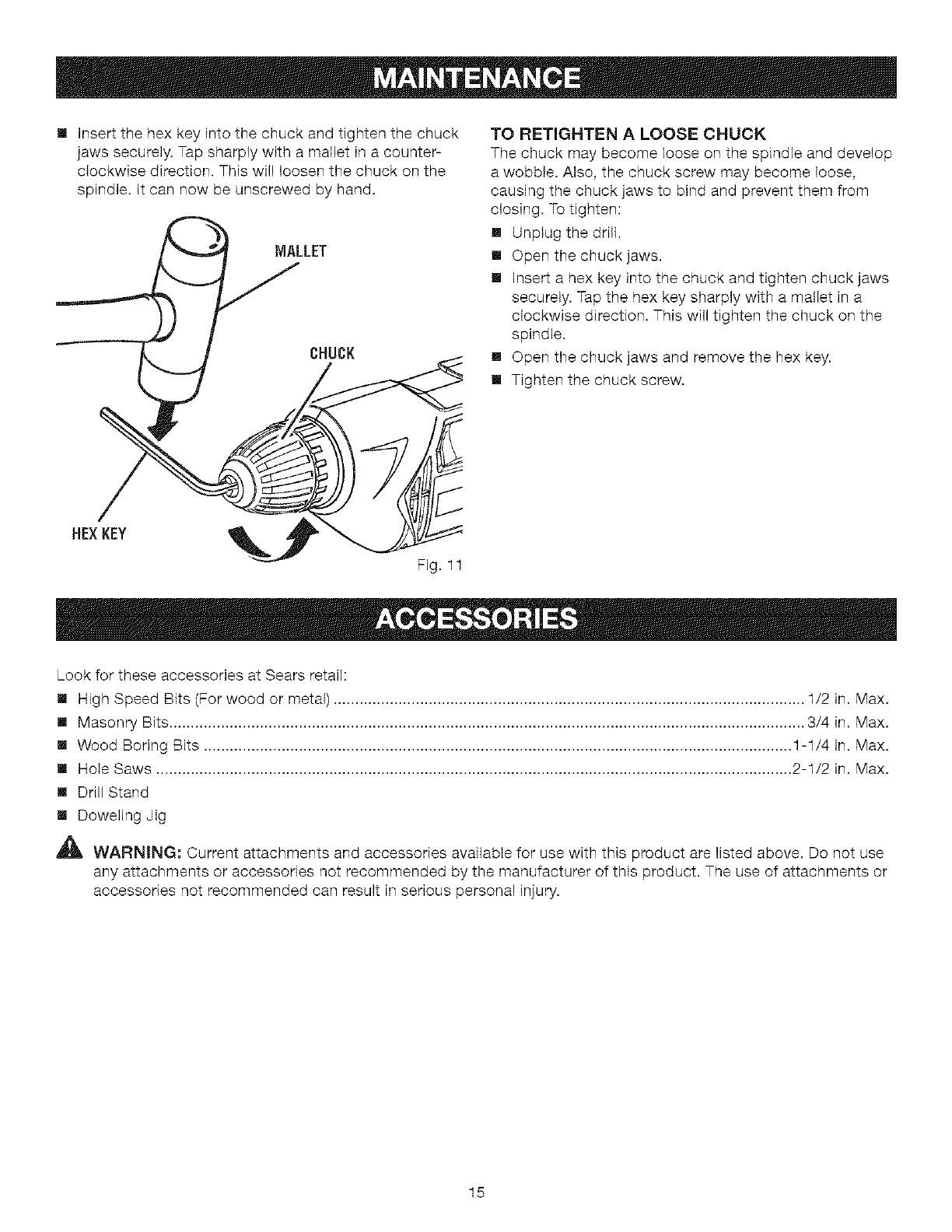 [] High Speed Bits (For wood or metal) ............................................................................................................. 1/2 in. Max.
