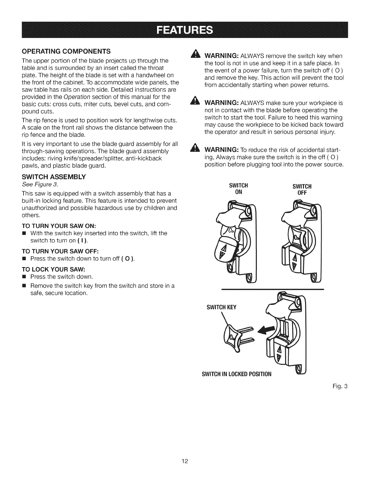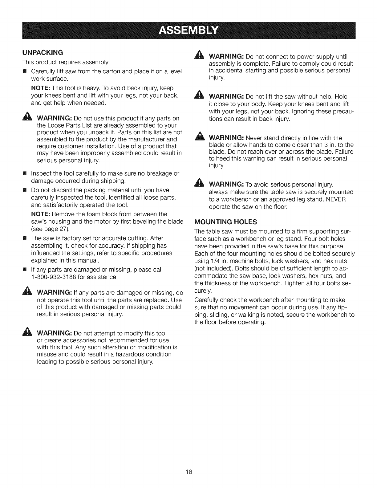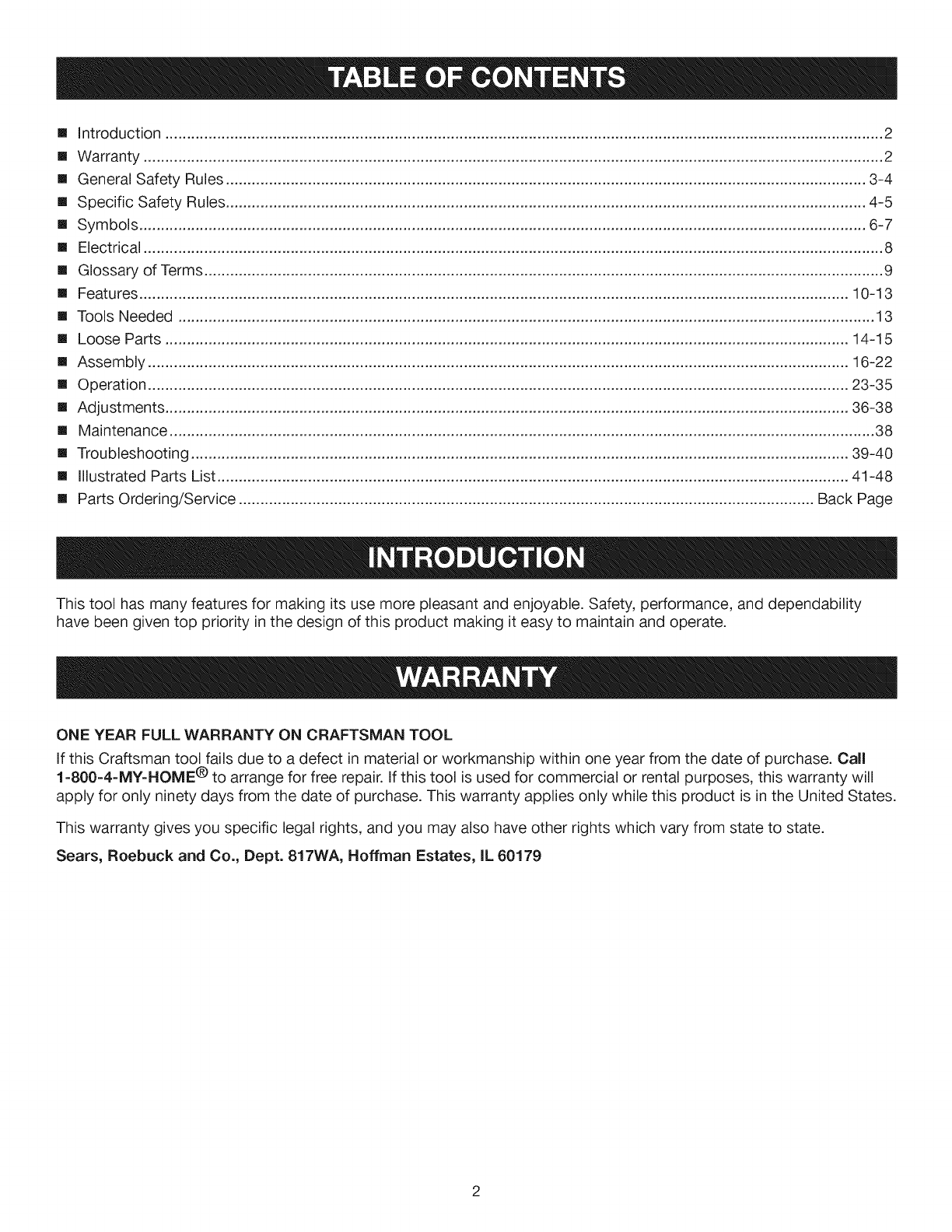 The model number will be found on a label attached to the cabinet. Always mention the model number in all correspondence regarding your 110 in, PORTABLE TABLE SAW or when ordering parts. J