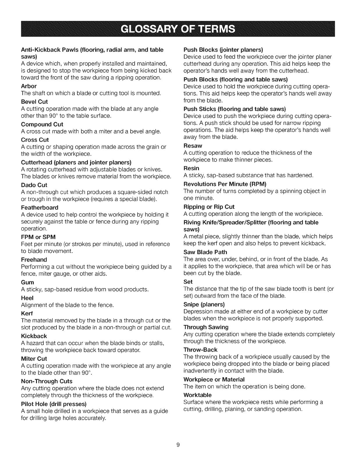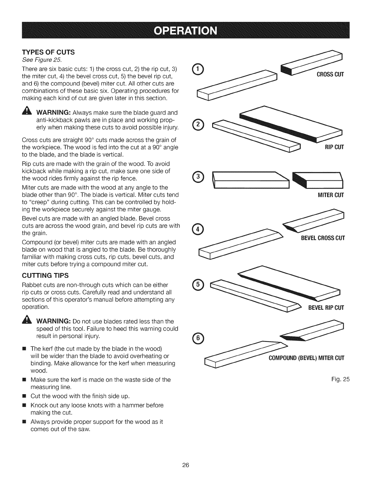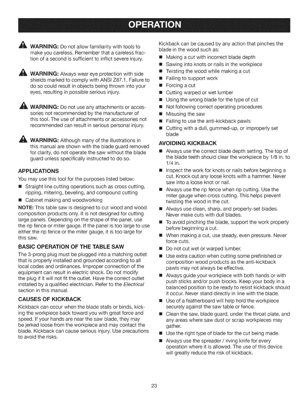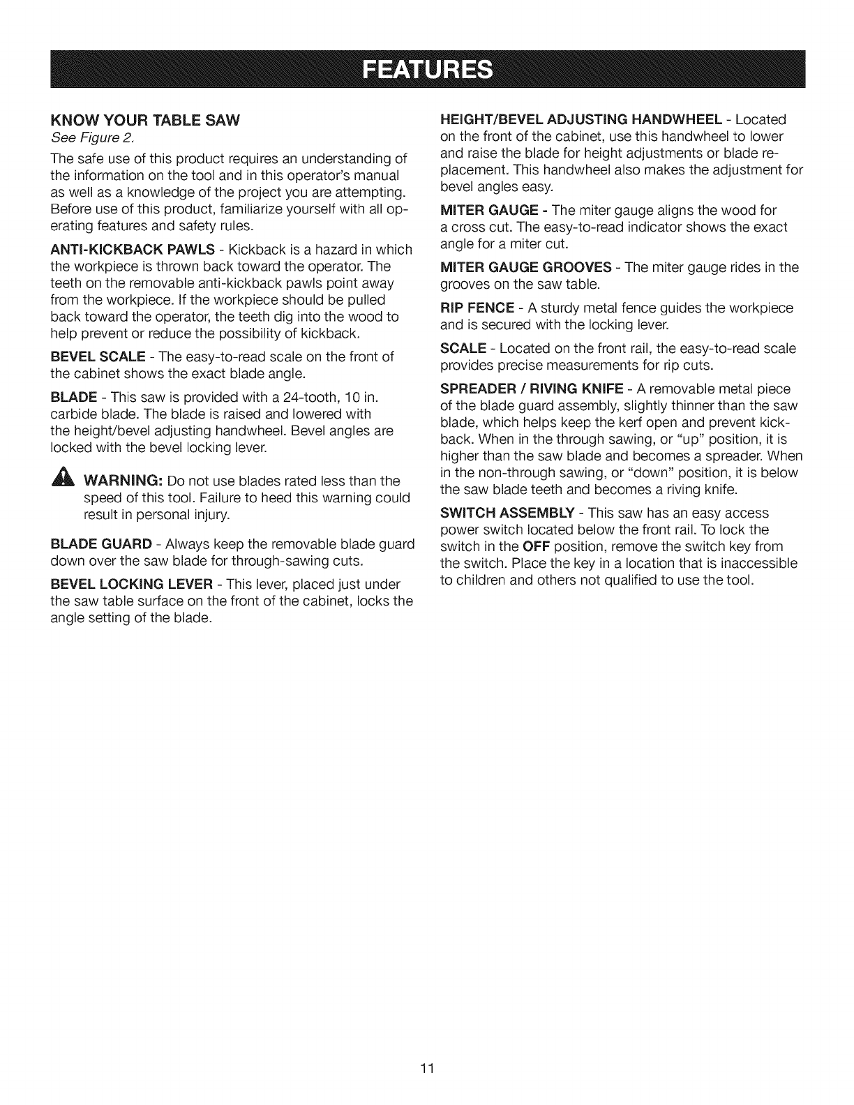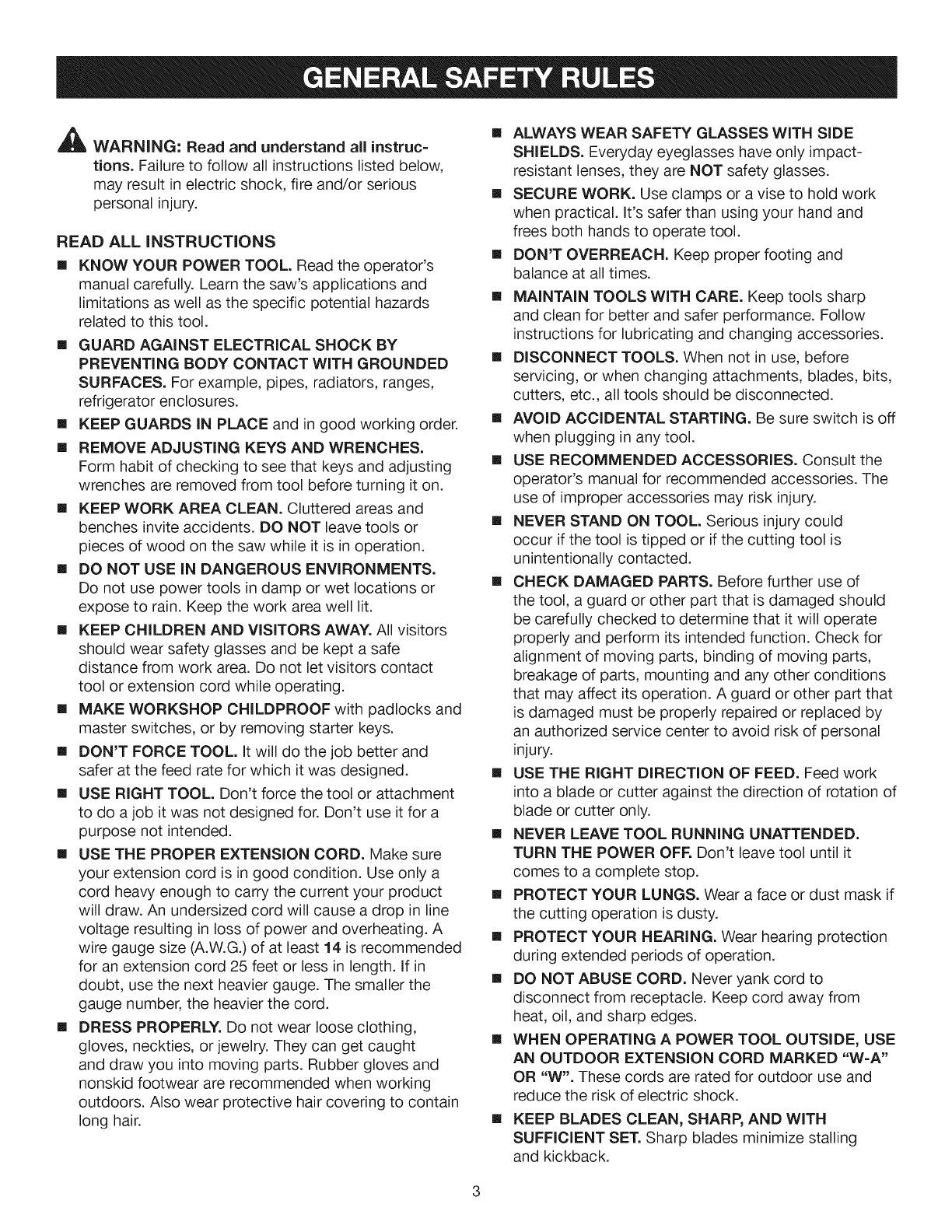 [] KNOW YOUR POWER TOOL. Read the operator's