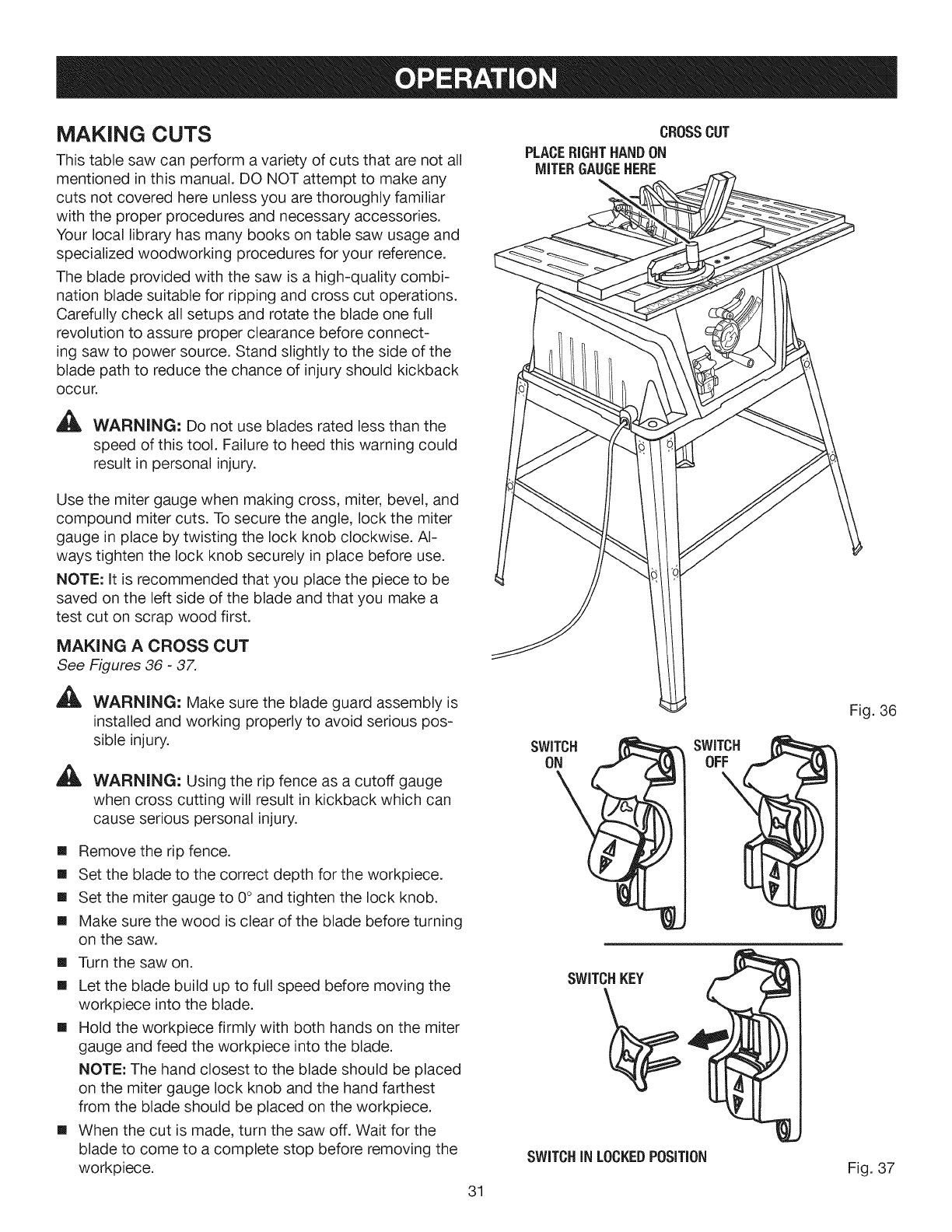 Craftsman 315284610 User Manual 10 TABLE SAW Manuals And Guides 1006850L