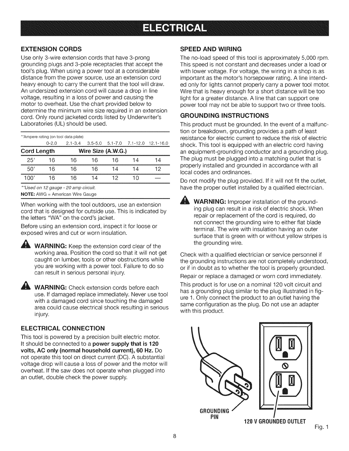 [] USE THE PROPER EXTENSION CORD. Make sure